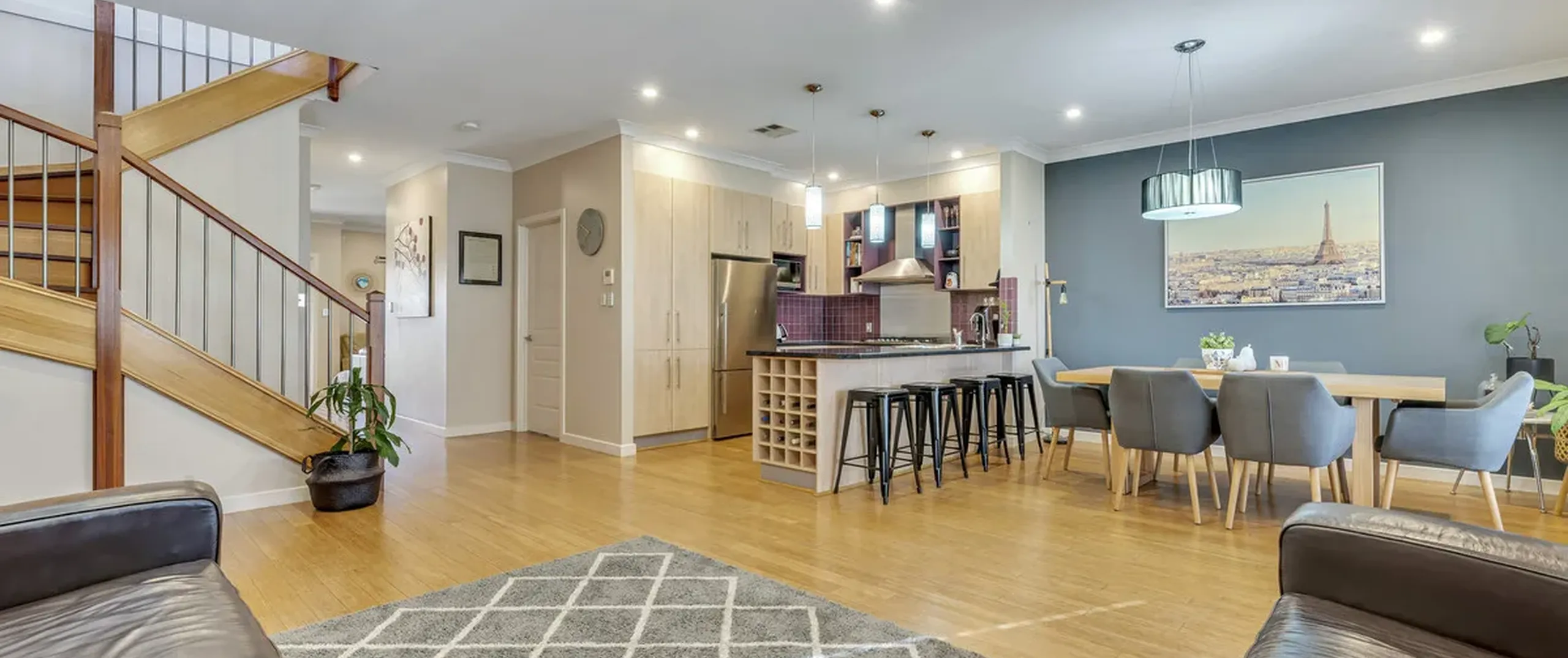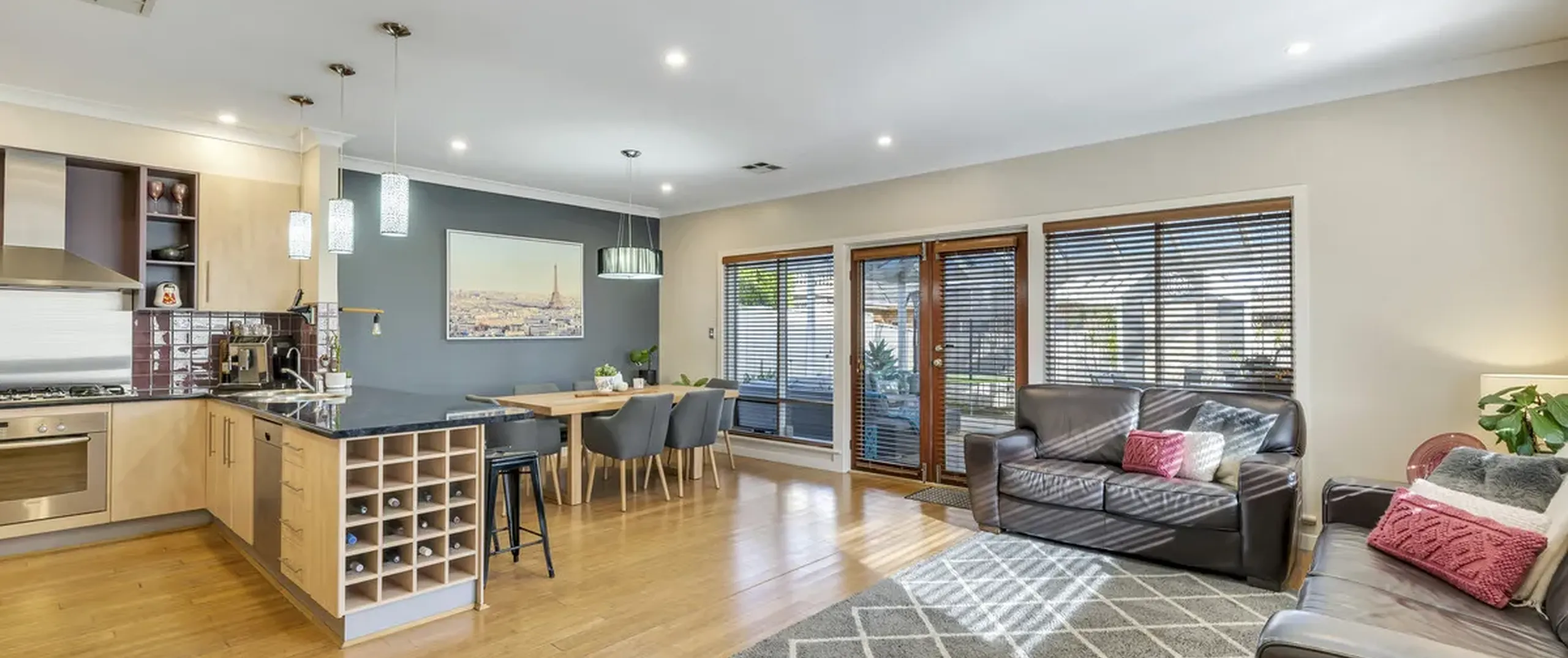 - Light filled open plan family and meals area with double doors to outdoor entertaining area