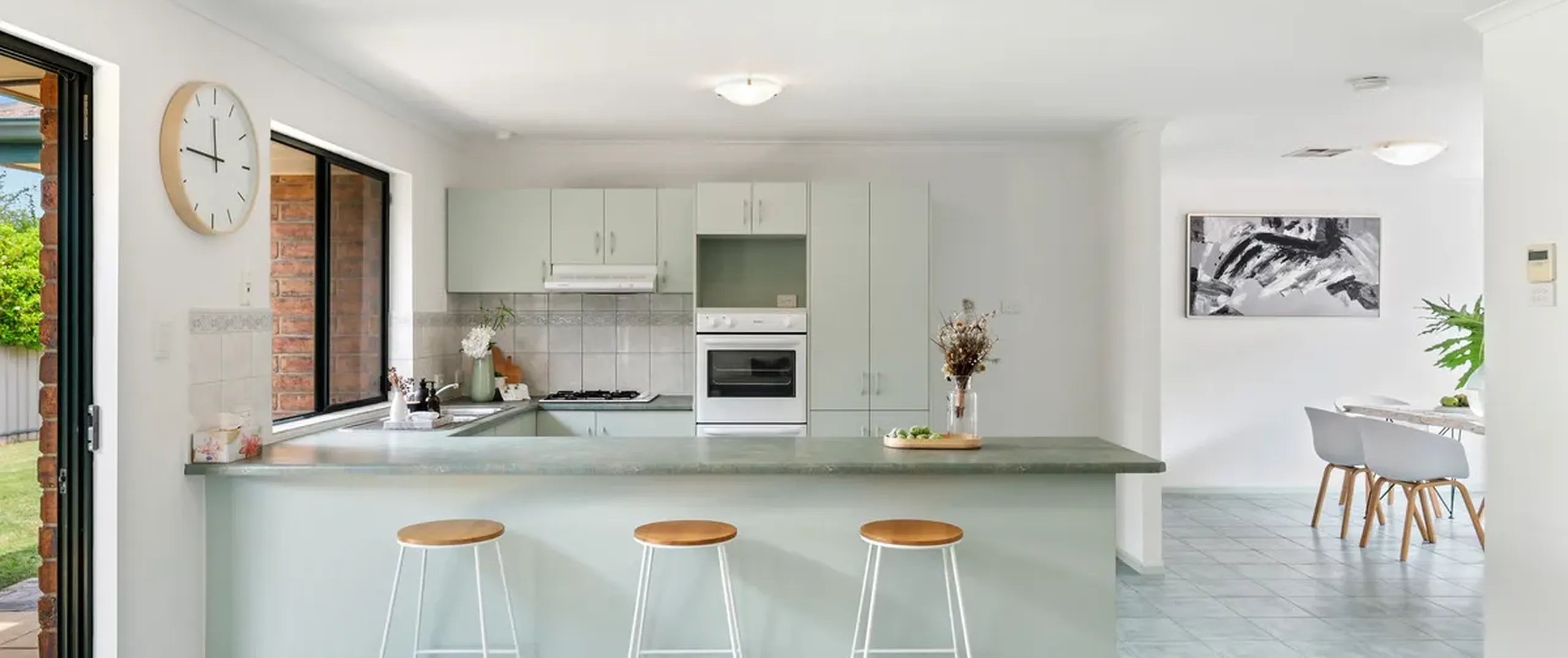 - Practical kitchen with dishwasher, gas cooktop, ample storage and island bench with breakfast bar