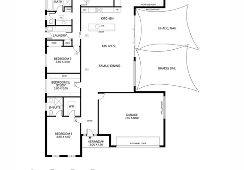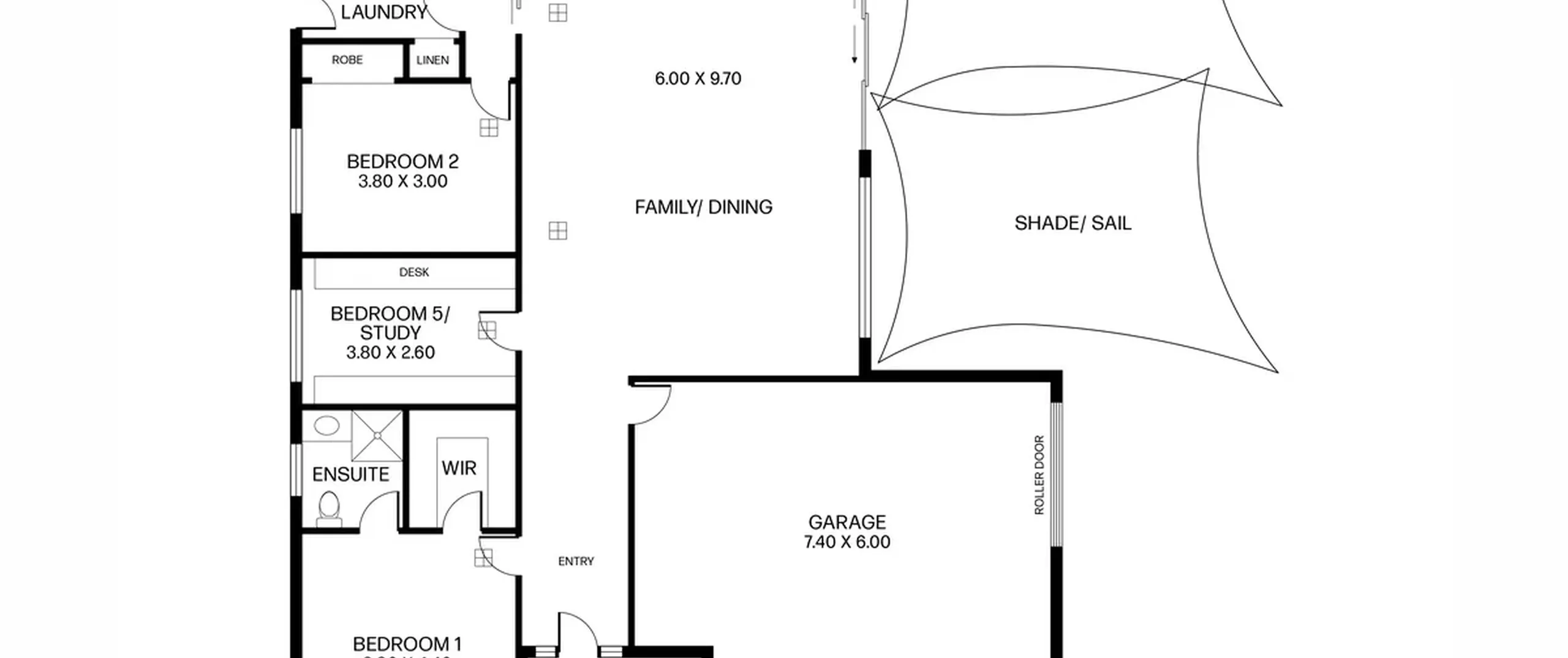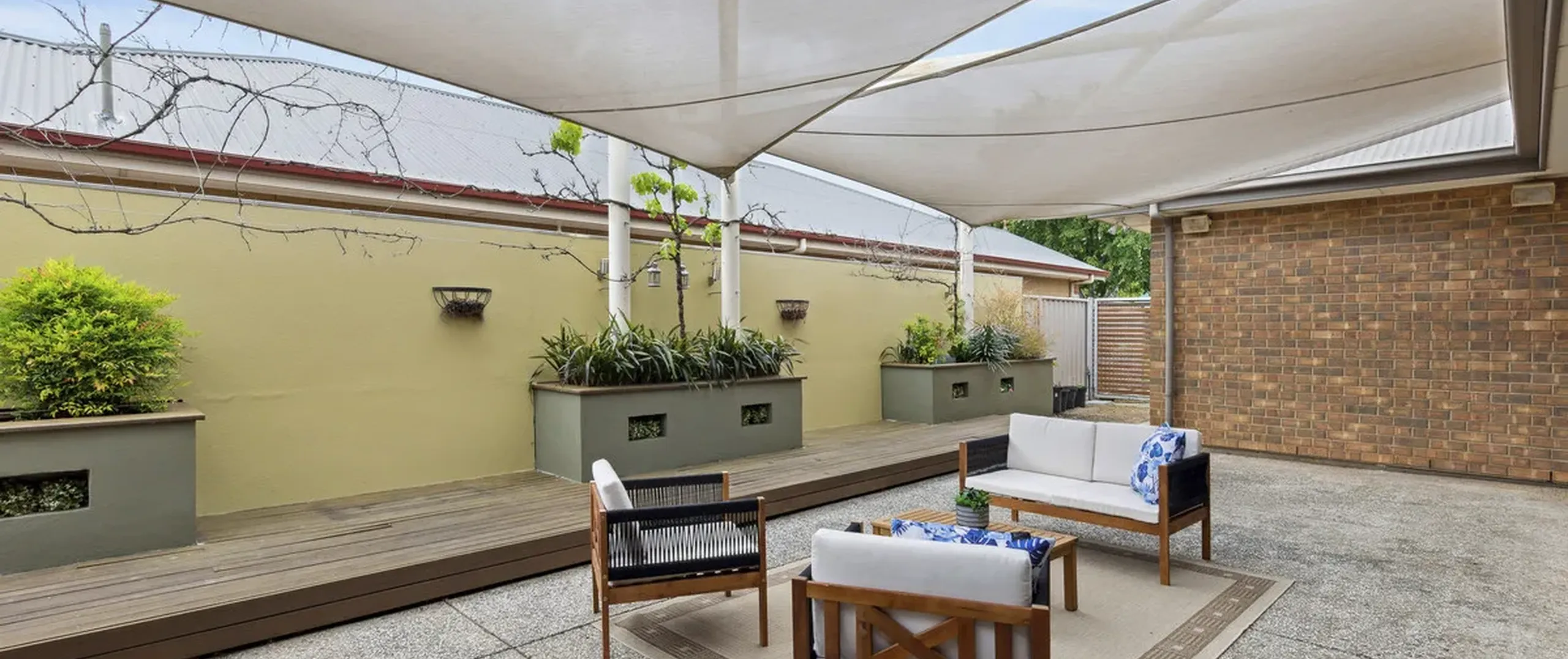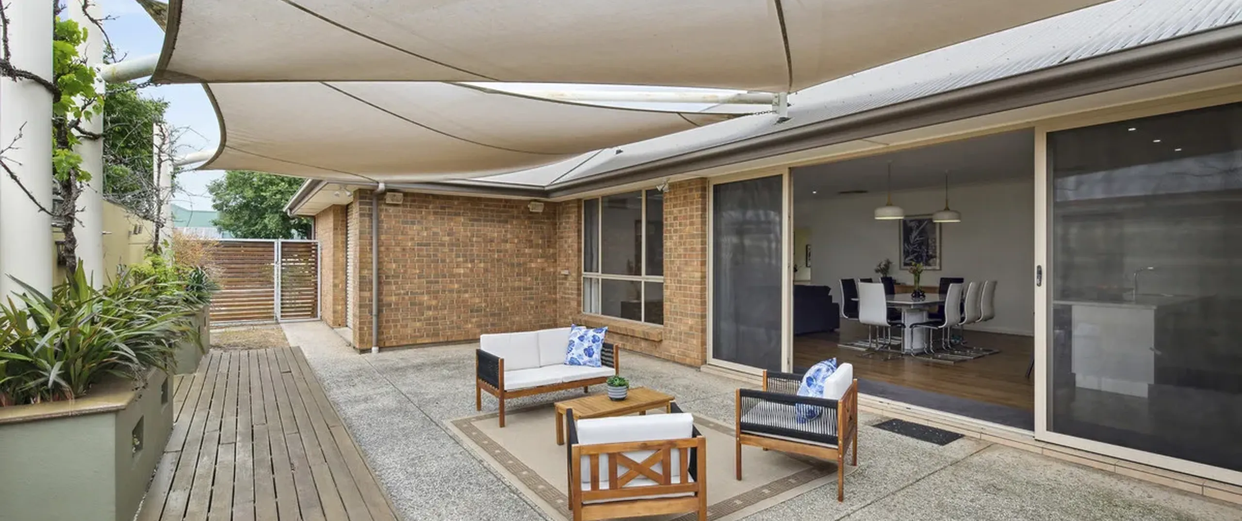 - Outdoor entertainer’s space with 2x shade sails, where you can host in style or relax and unwind