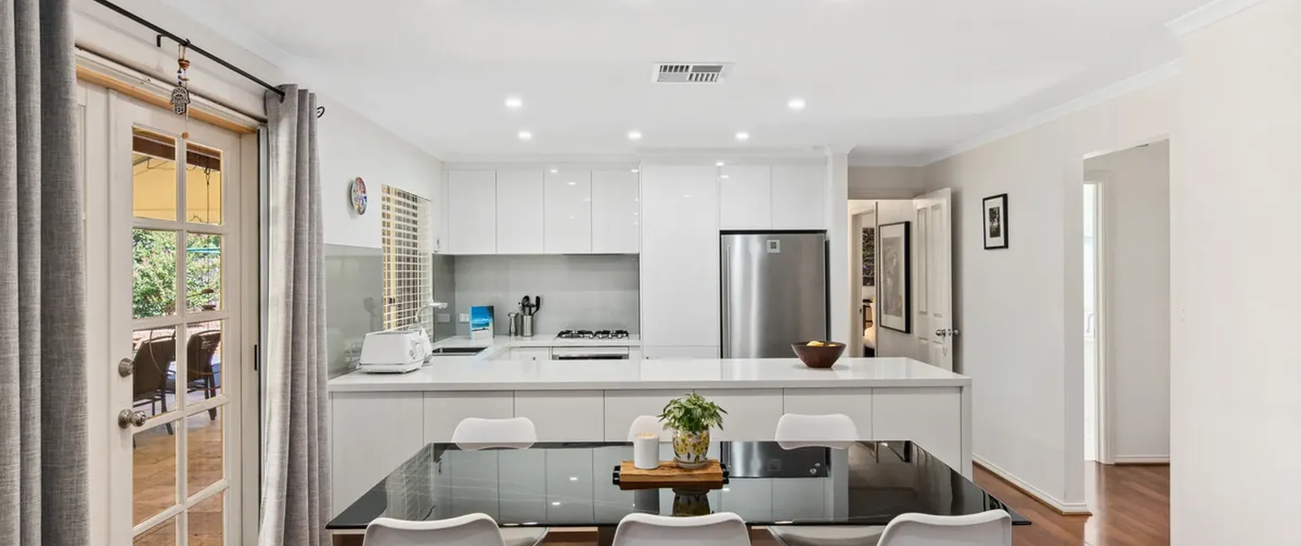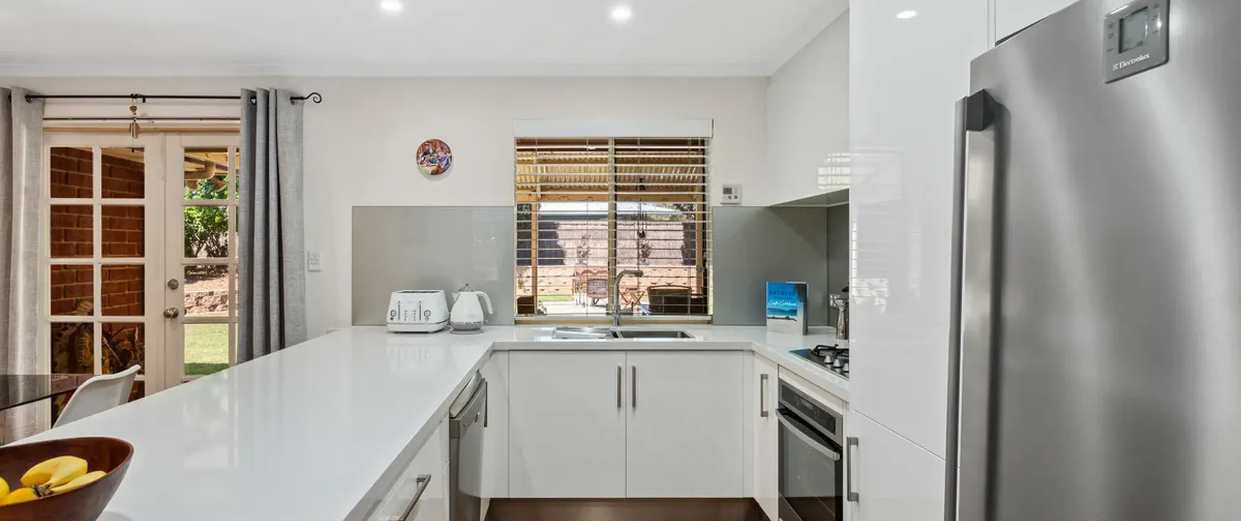 - High-quality, renovated kitchen with a suite of stainless-steel appliances including dishwasher, gas cooktop, oven, built in microwave, puratap, ample cupboard space (including cupboards on both sides of the island bench), soft-close drawers and 40mm sweeping stone bench tops