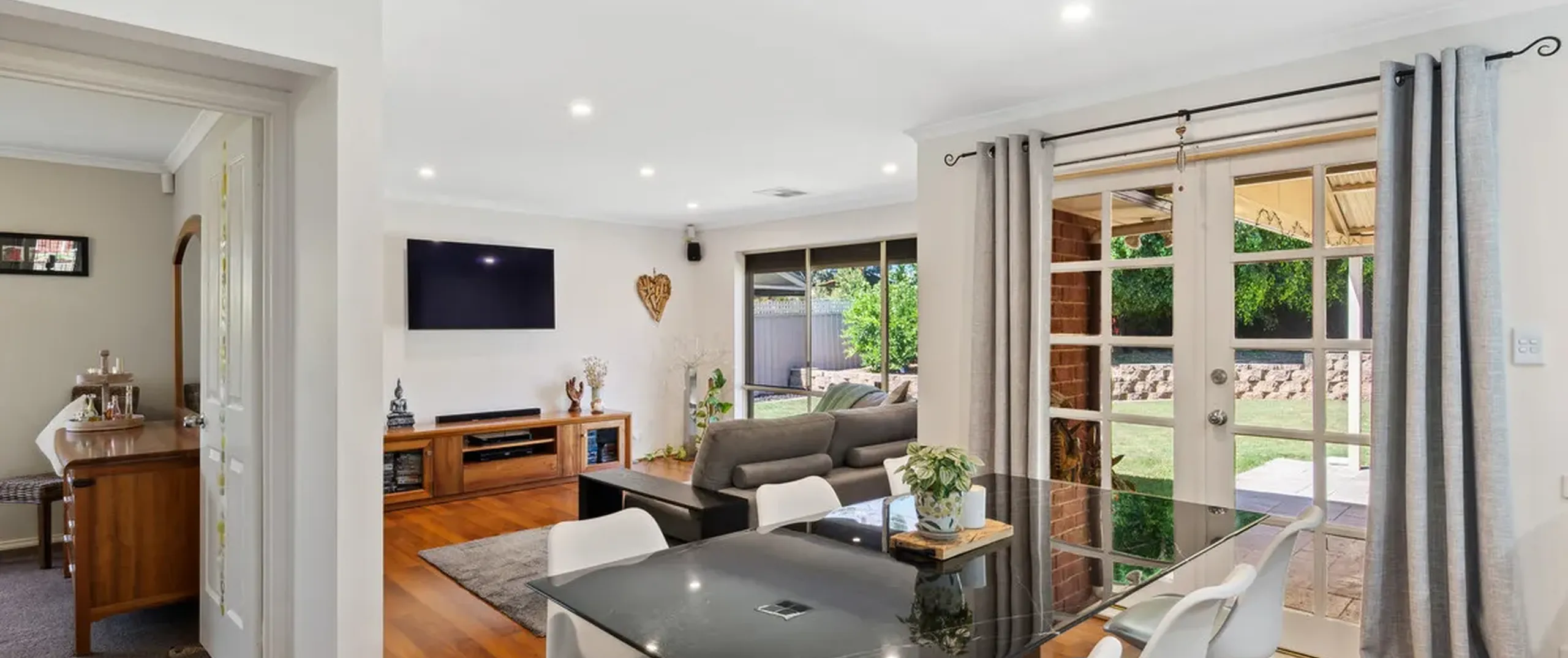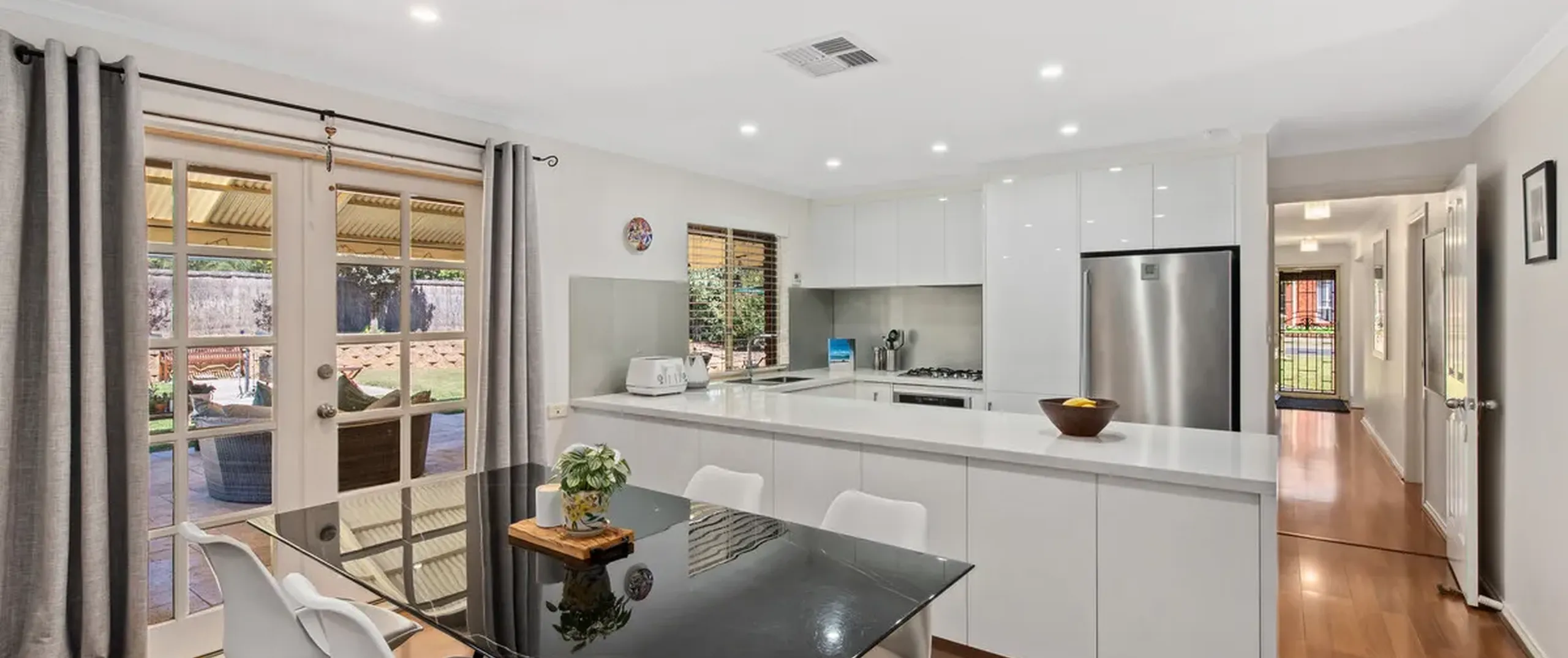 - Spacious open plan kitchen, meals and family area with stunning timber flooring throughout and lit with LED downlights