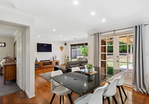 Upon entering, a warm and inviting ambience welcomes you beyond the striking facade. The layout unfolds into a spacious lounge room, bathed in natural light, which further extends down the hallway to the family, kitchen, and dining area. Throughout, a neutral colour palette creates a soothing atmosphere, and the well-appointed, updated kitchen, boasting sweeping 40mm stone benchtops, a gas cooktop, and a dishwasher is a haven for any home chef.