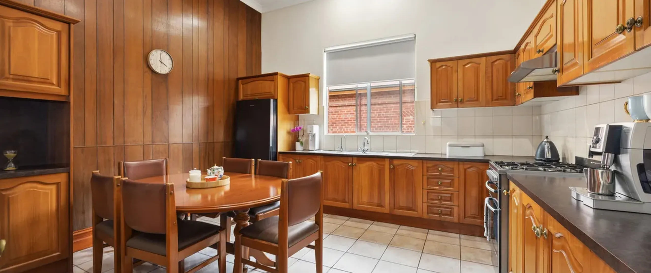 - Spacious timber kitchen with gas cooking, ample storage and bench space