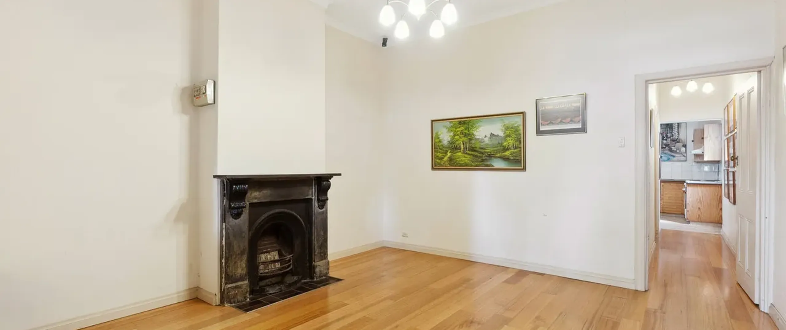 - Lounge room upon entry with original fire place and charming ceiling rose
