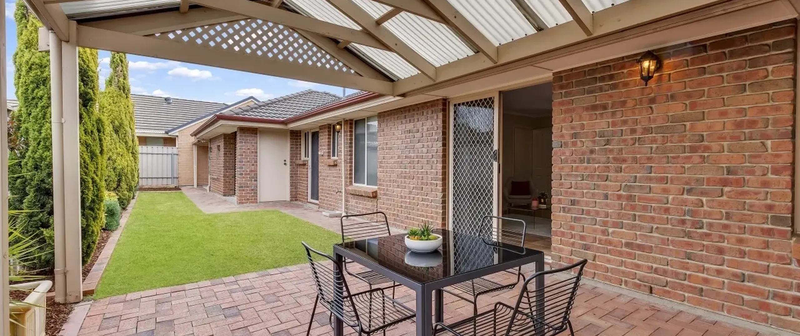 - Gabled roof outdoor entertaining area