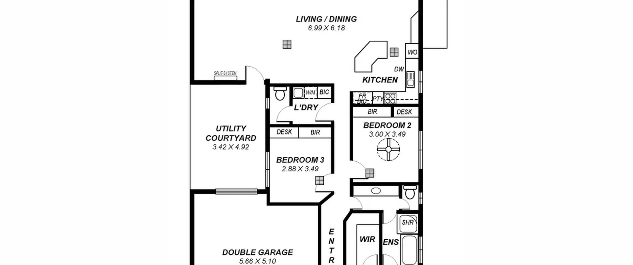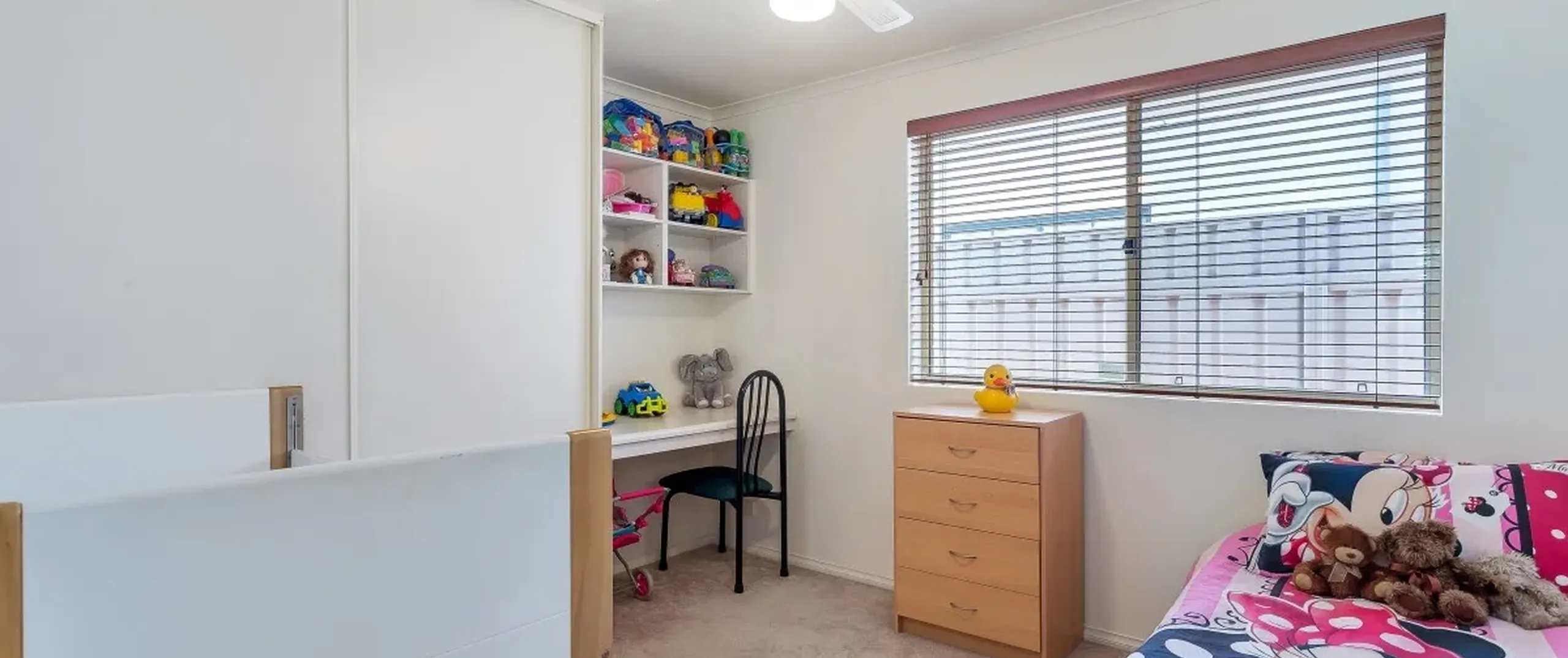 - Good sized bedroom 2 and 3, both with built in robes and desks, bedroom 2 with ceiling fan