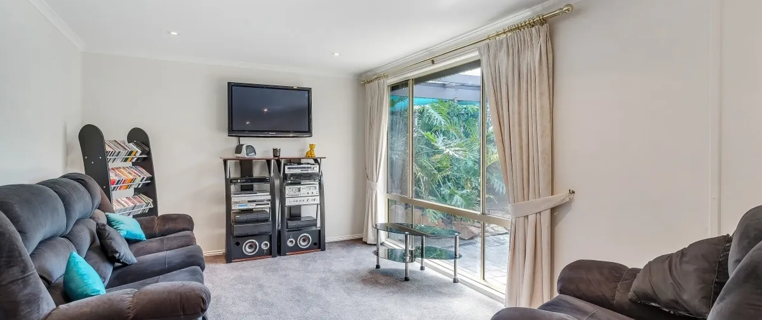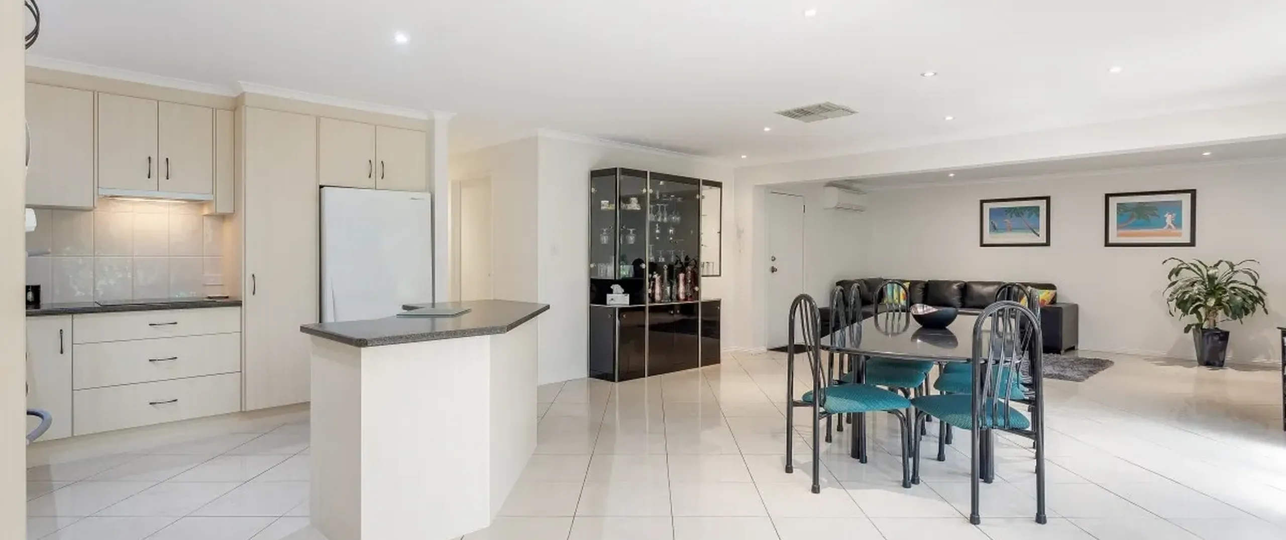 - Large light filled open plan living area with split system air conditioner and heater