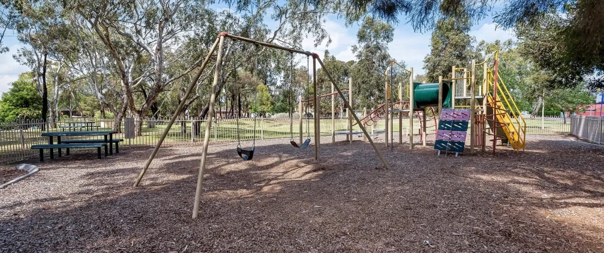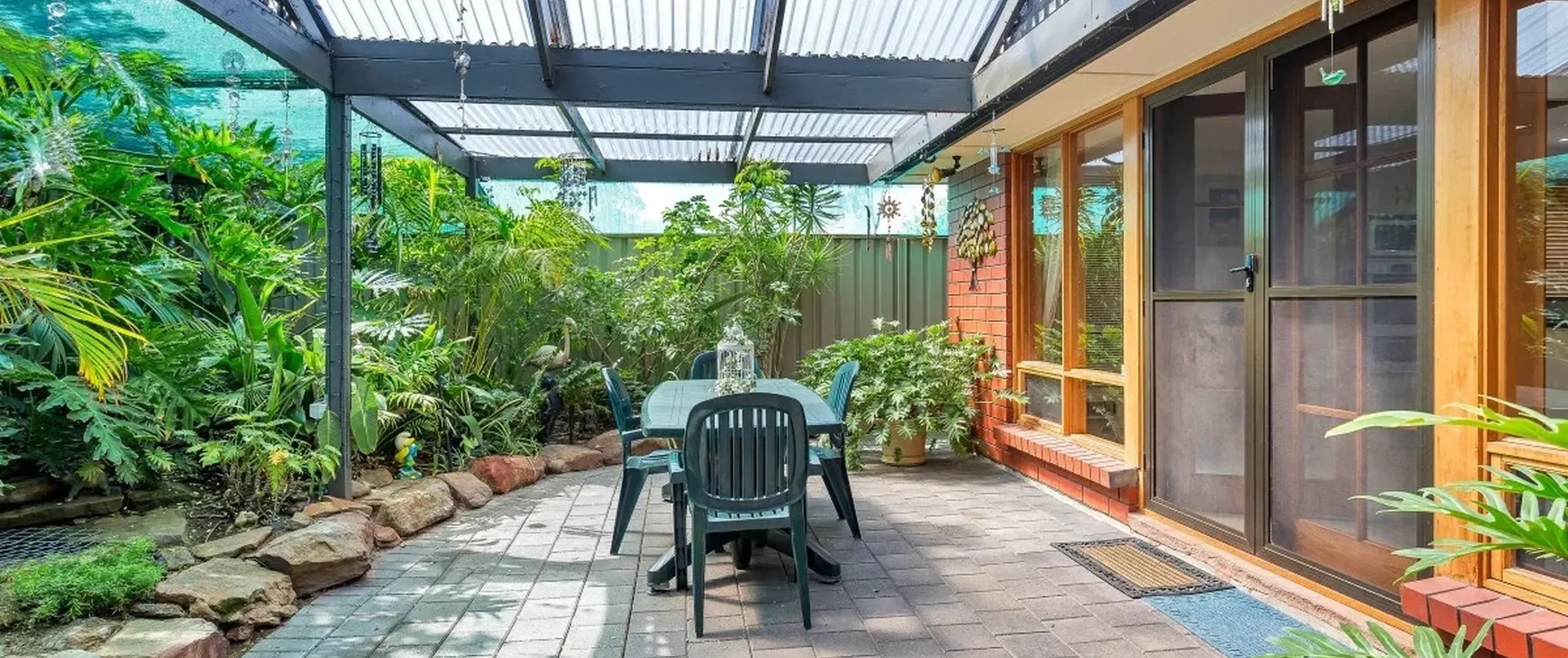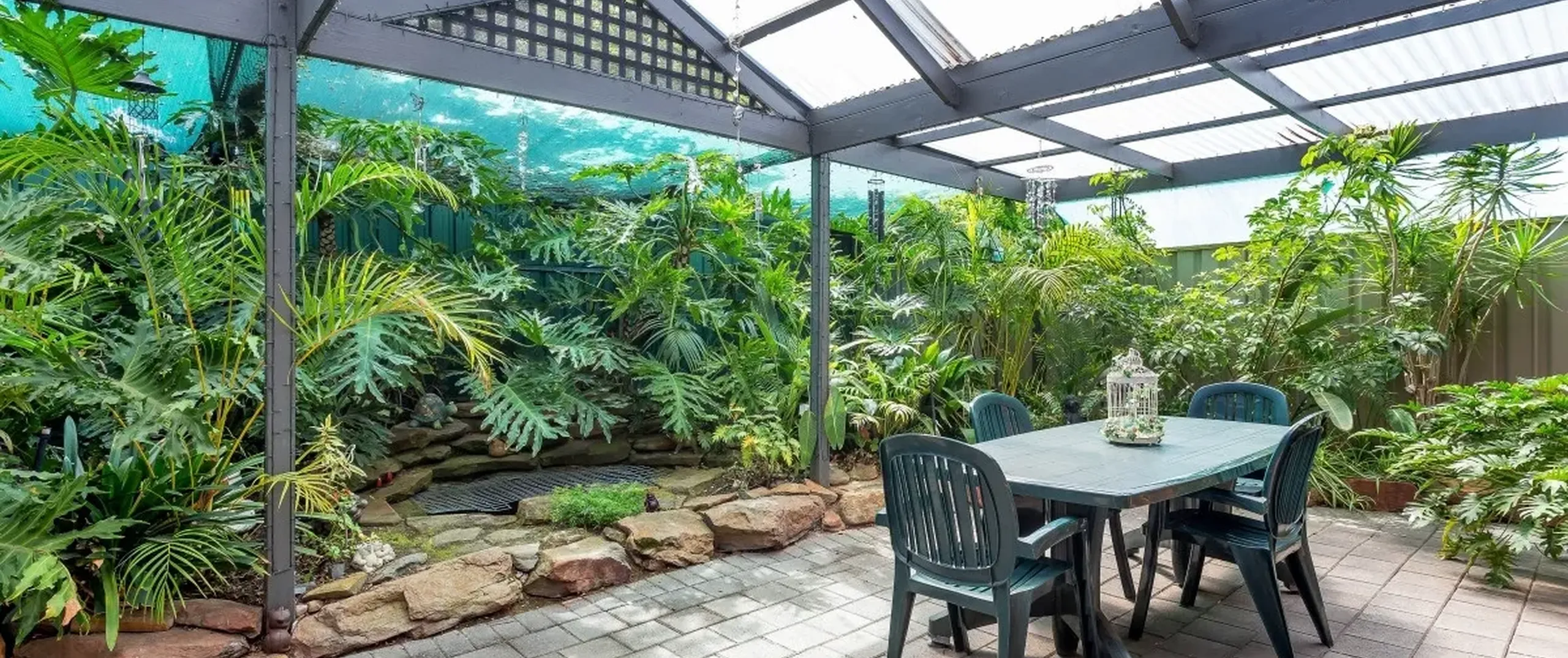- Fully fenced rear yard with established garden and pond