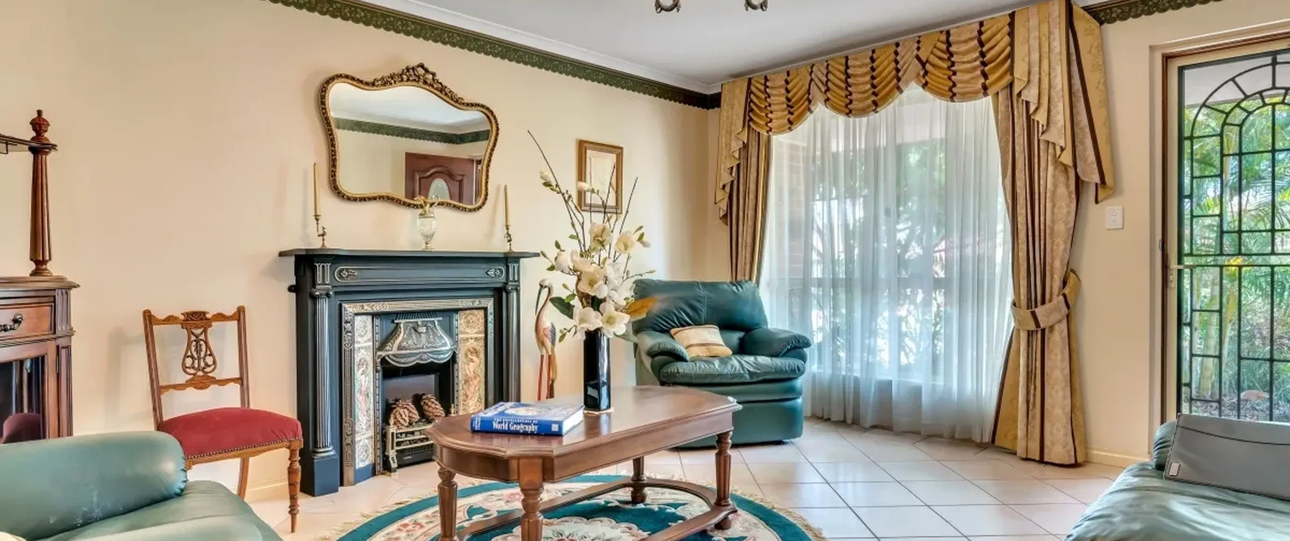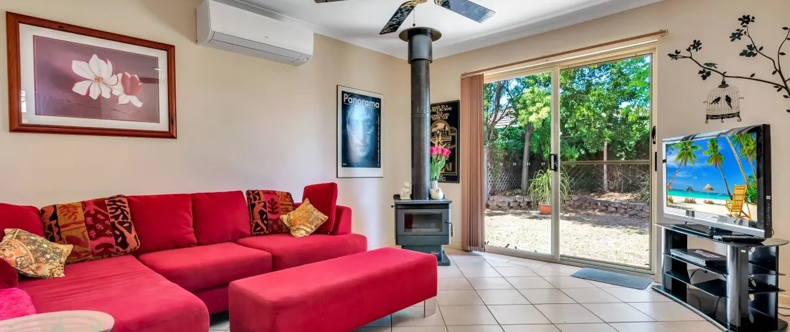 - Light filled family room with split system air conditioner, combustion heater and ceiling fan