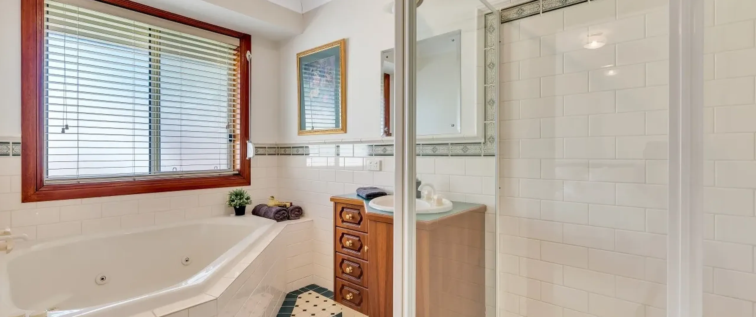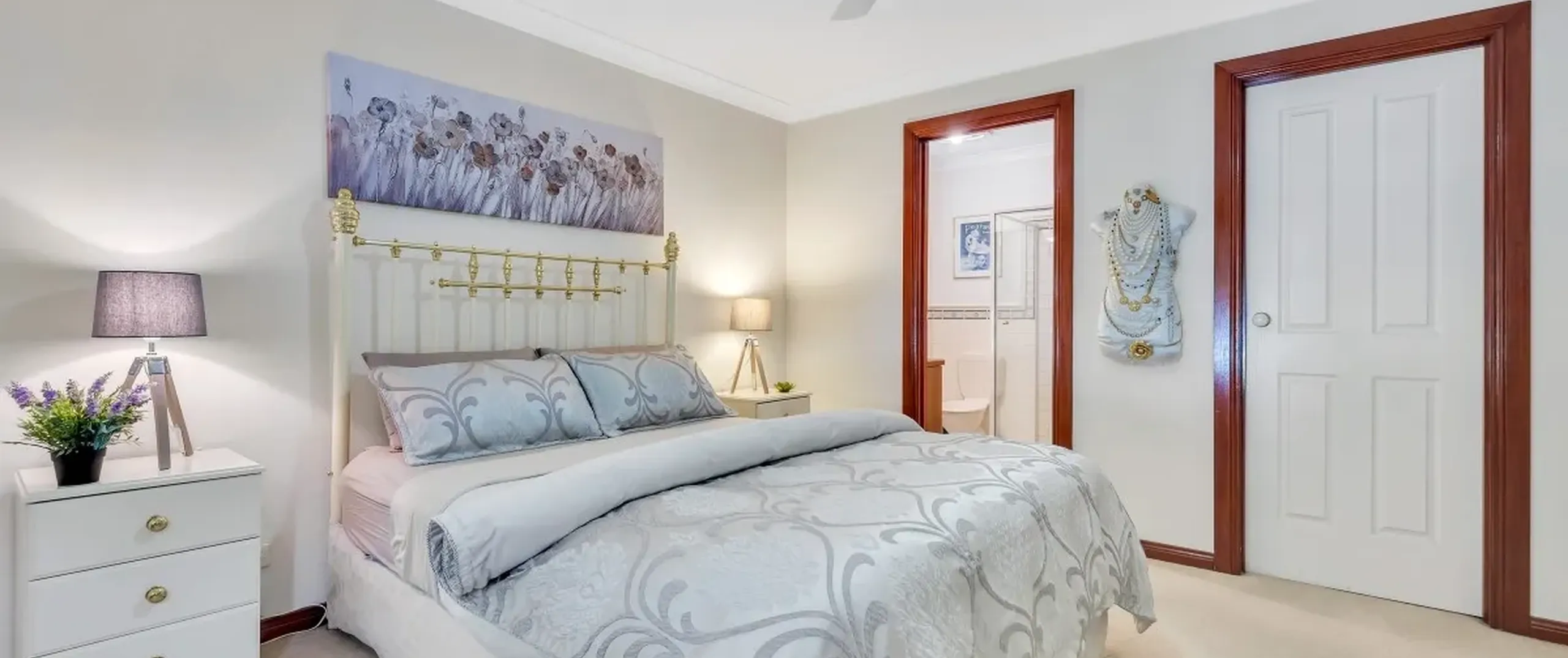 - Large master bedroom with bay window, ceiling fan, walk-in robe and ensuite