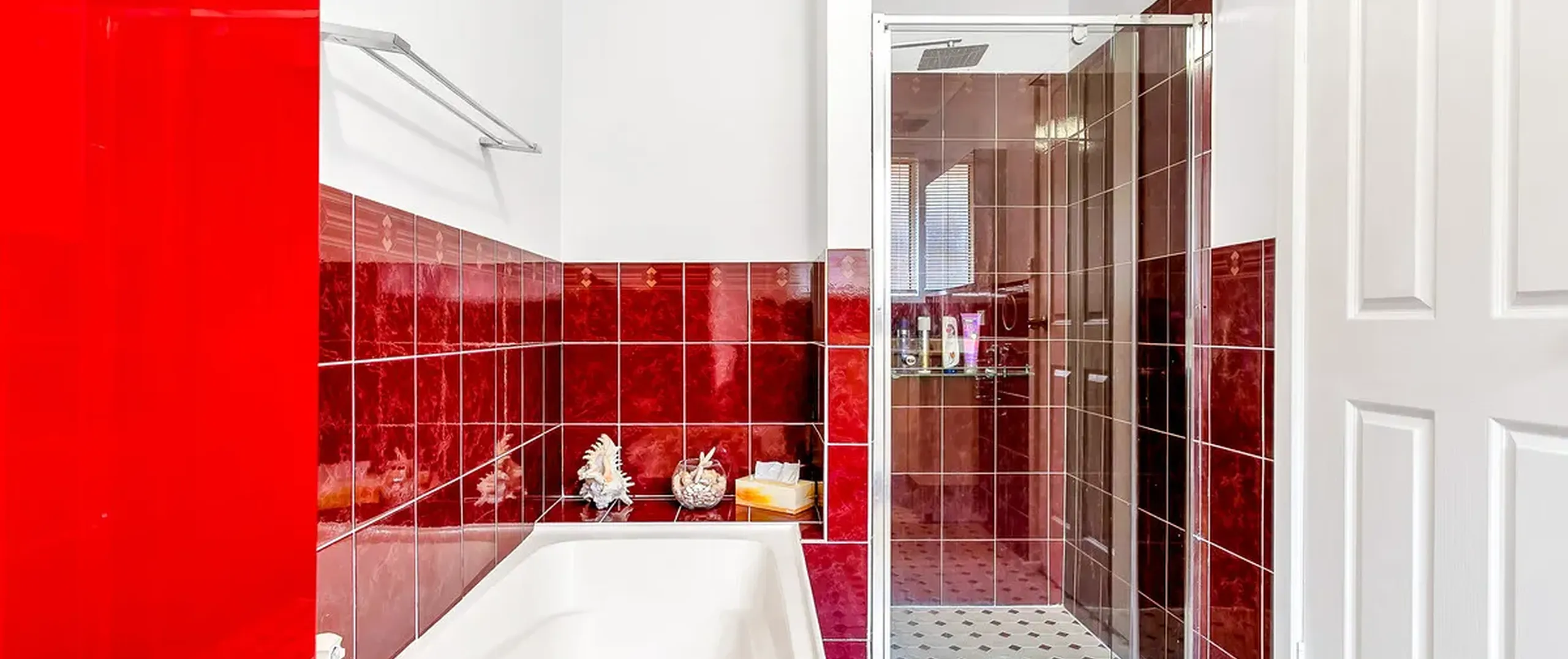 - Modern two way bathroom with separate bath and shower + toilet
