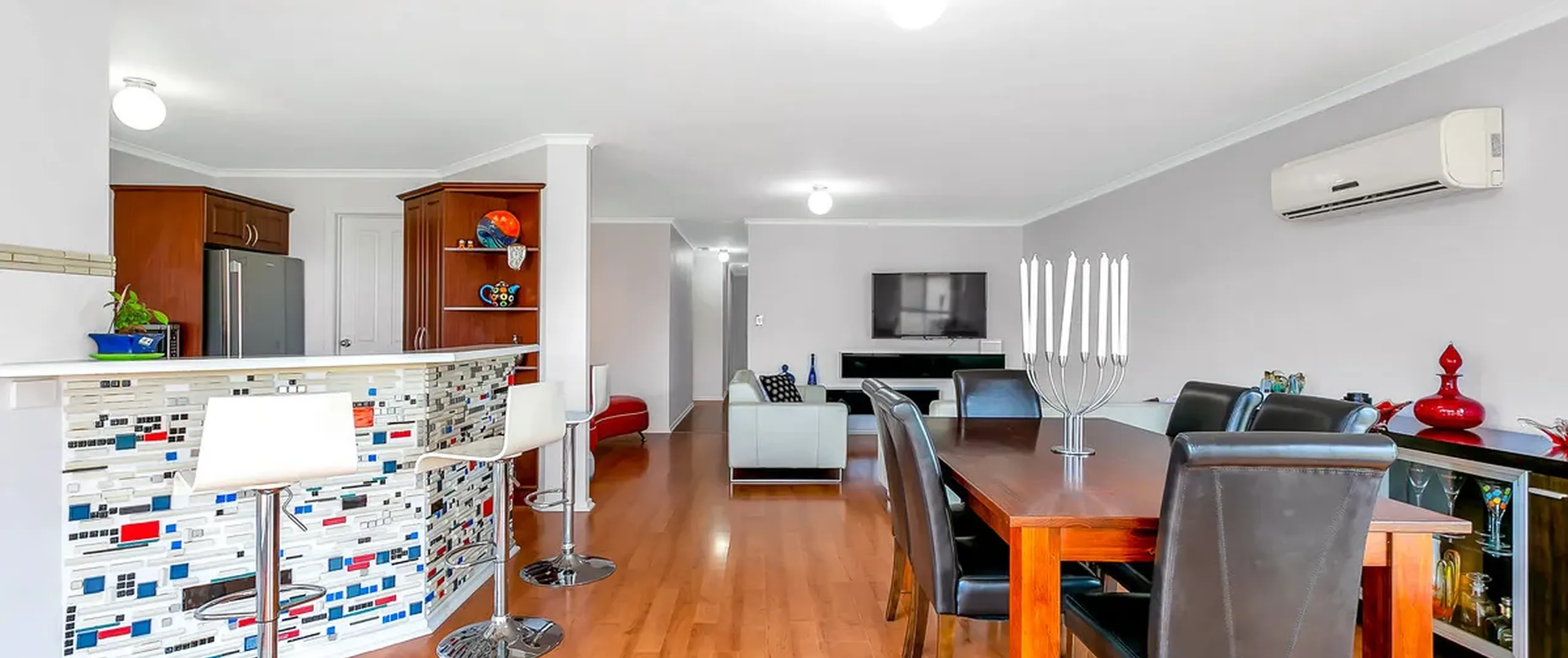 - Expansive, light filled, open plan lounge/dining area with split system air conditioning