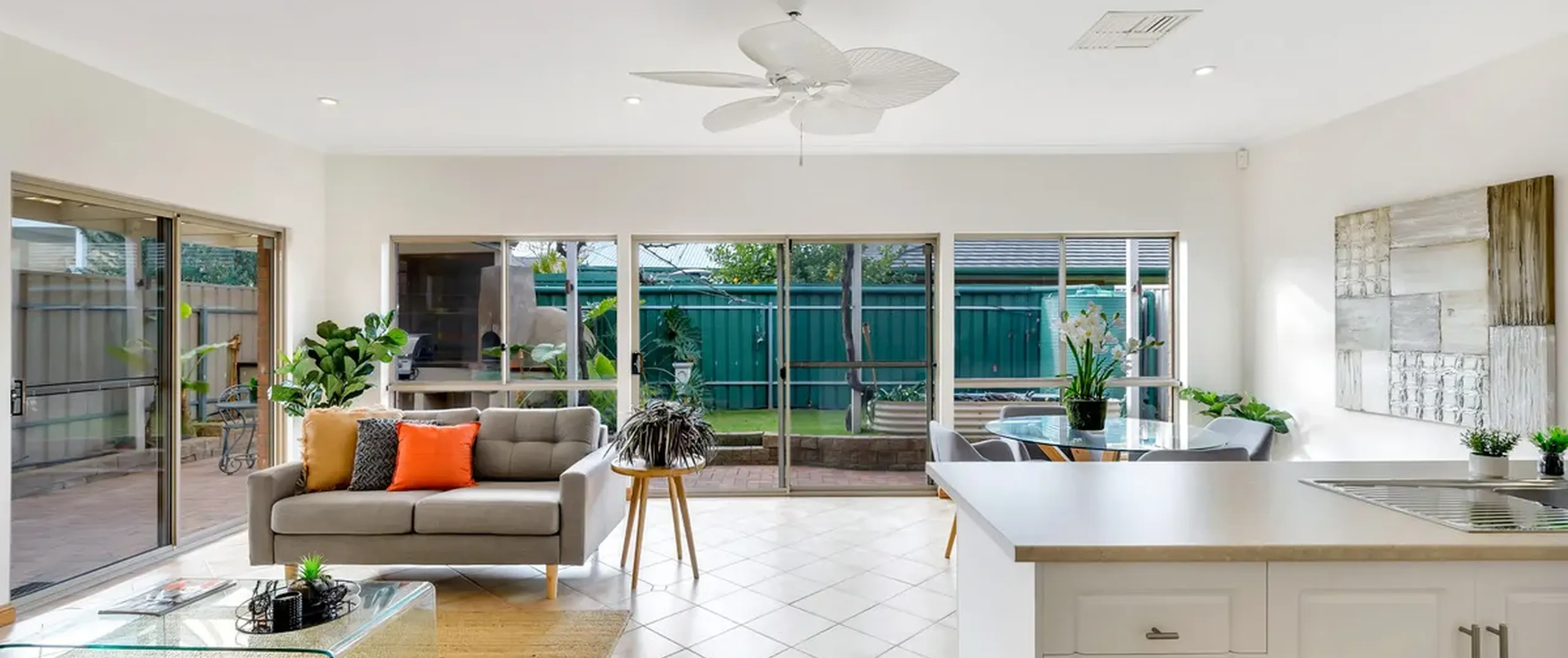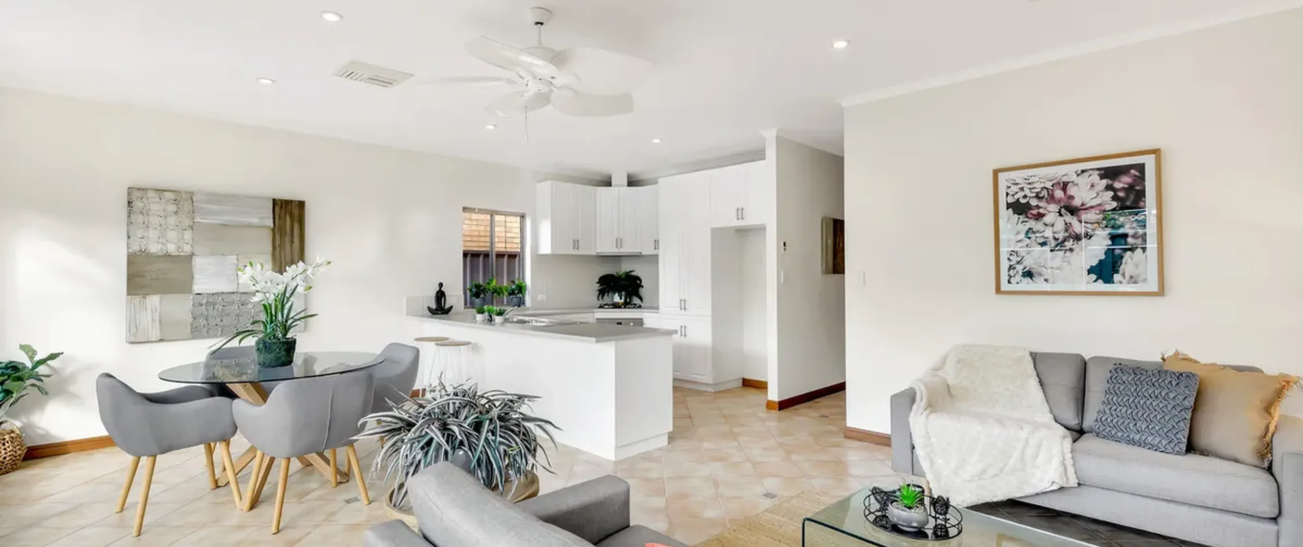 - Commodious open plan living/meals area with ample natural light and ceiling fan