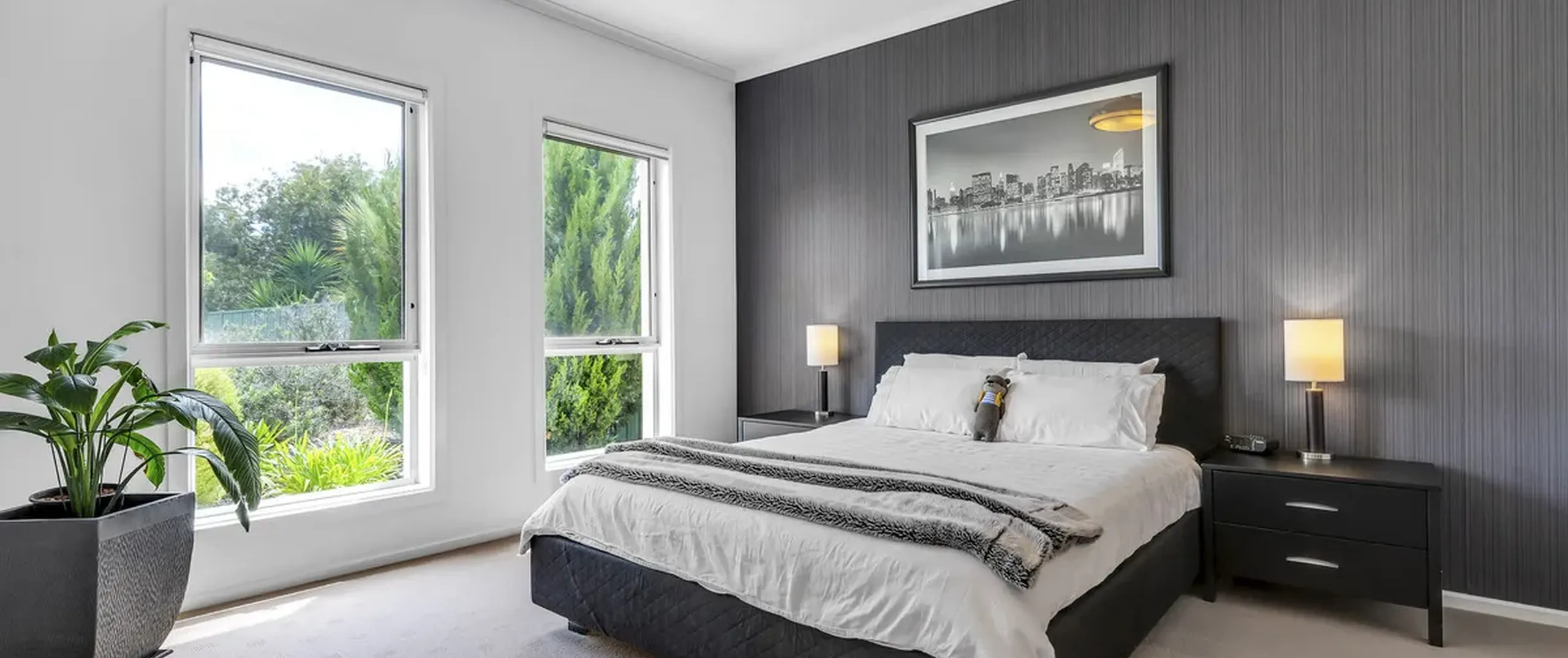 - Master bedroom with large walk-in robe and on-trend ensuite featuring ‘His and Hers’ basins and wall hung vanity