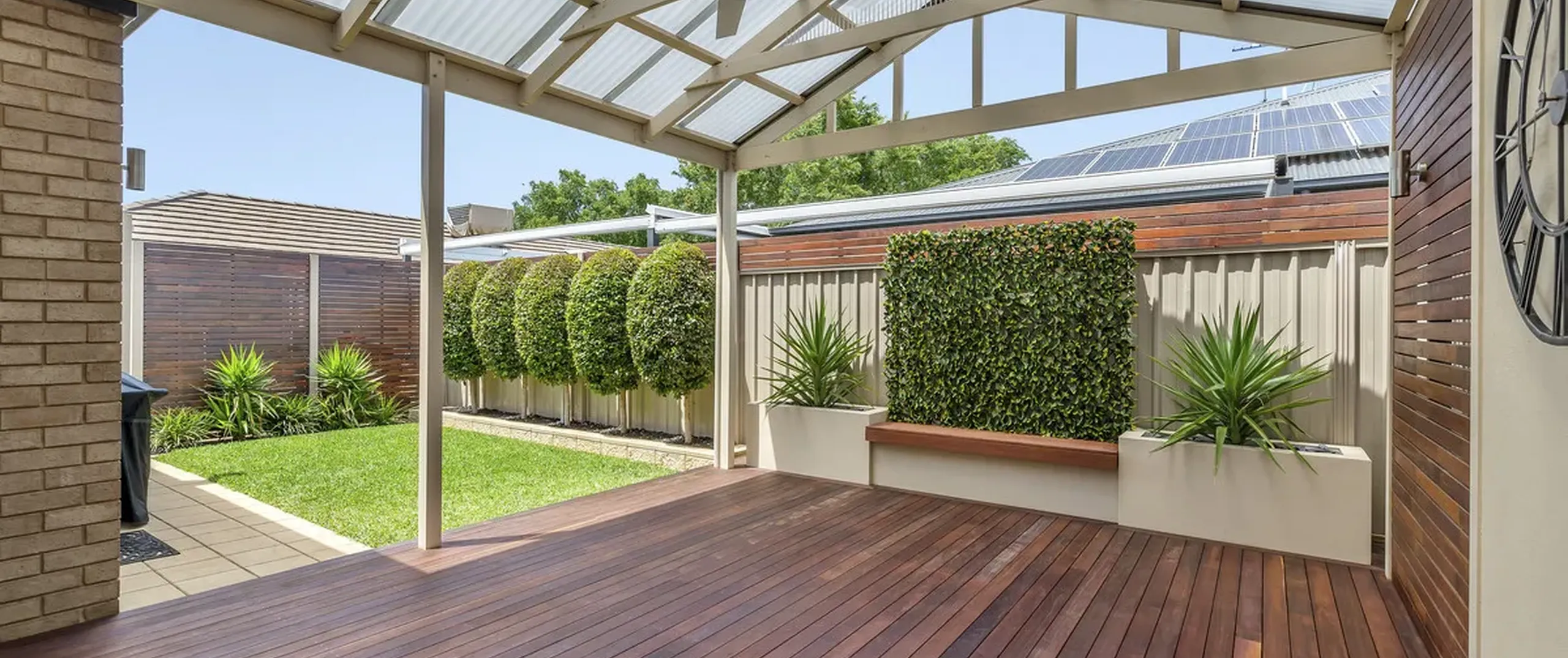 - Impressive outdoor entertaining area with gable roofed pergola