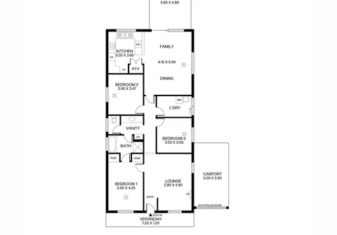 - Single carport with drive-through access and automatic roller door