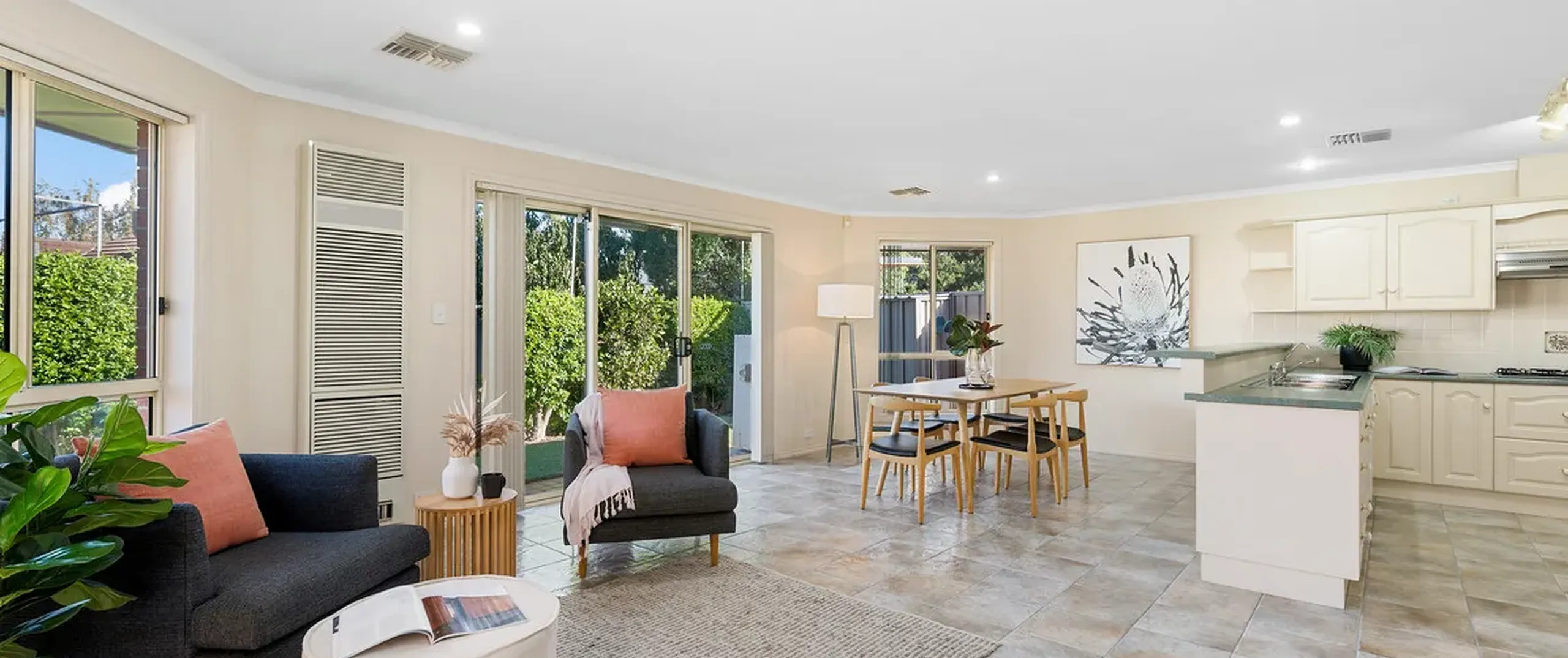 Peaceful, private and serene living awaits the lucky new owners of this family home nestled in a prized pocket of Oakden, nearest the picturesque Roy Amer reserve. Just as impressive as the sought-after location is the Tudor replica designed façade, flexible floorplan with multiple living areas and three bedrooms, paired with an abundance of natural light, a host of character features and a neutral colour scheme.