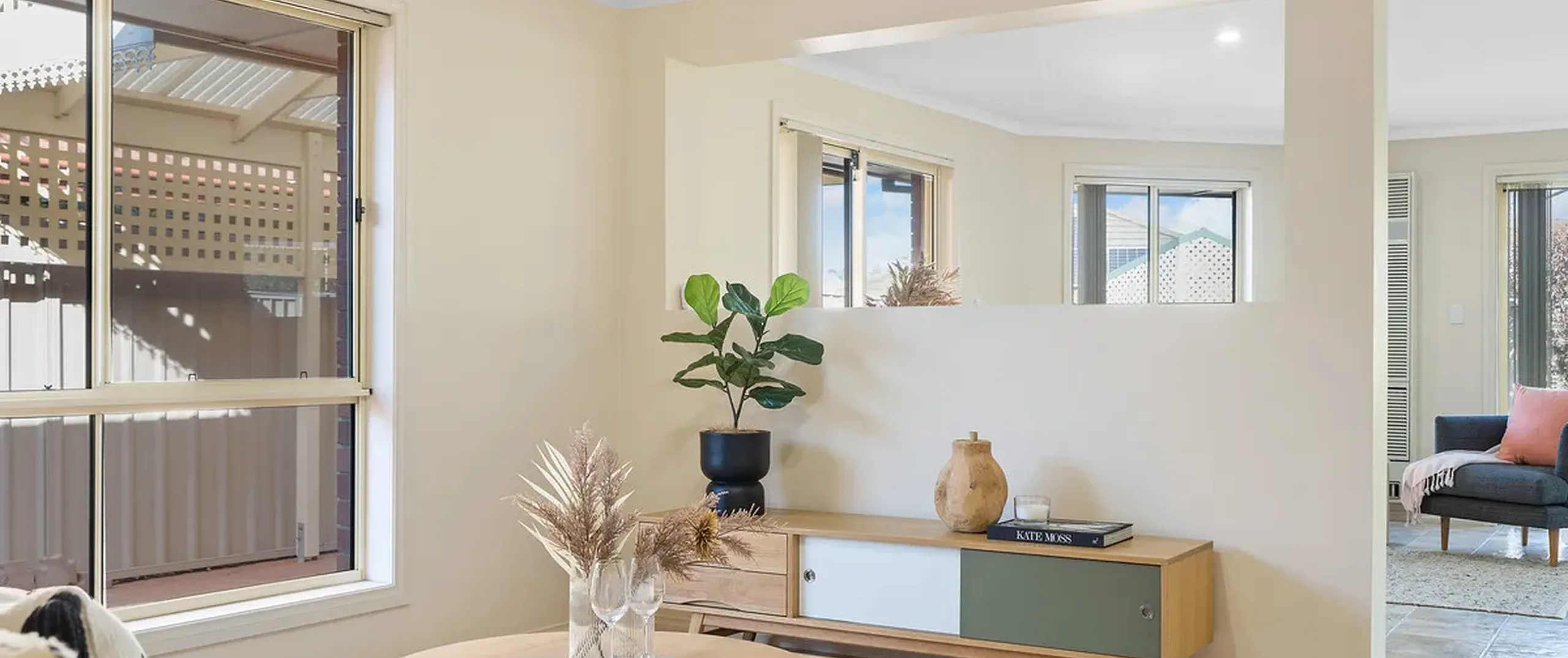 - Open plan meals and living room with gas heater complete with sliding doors opening seamlessly to the rear yard and the large outdoor entertaining area