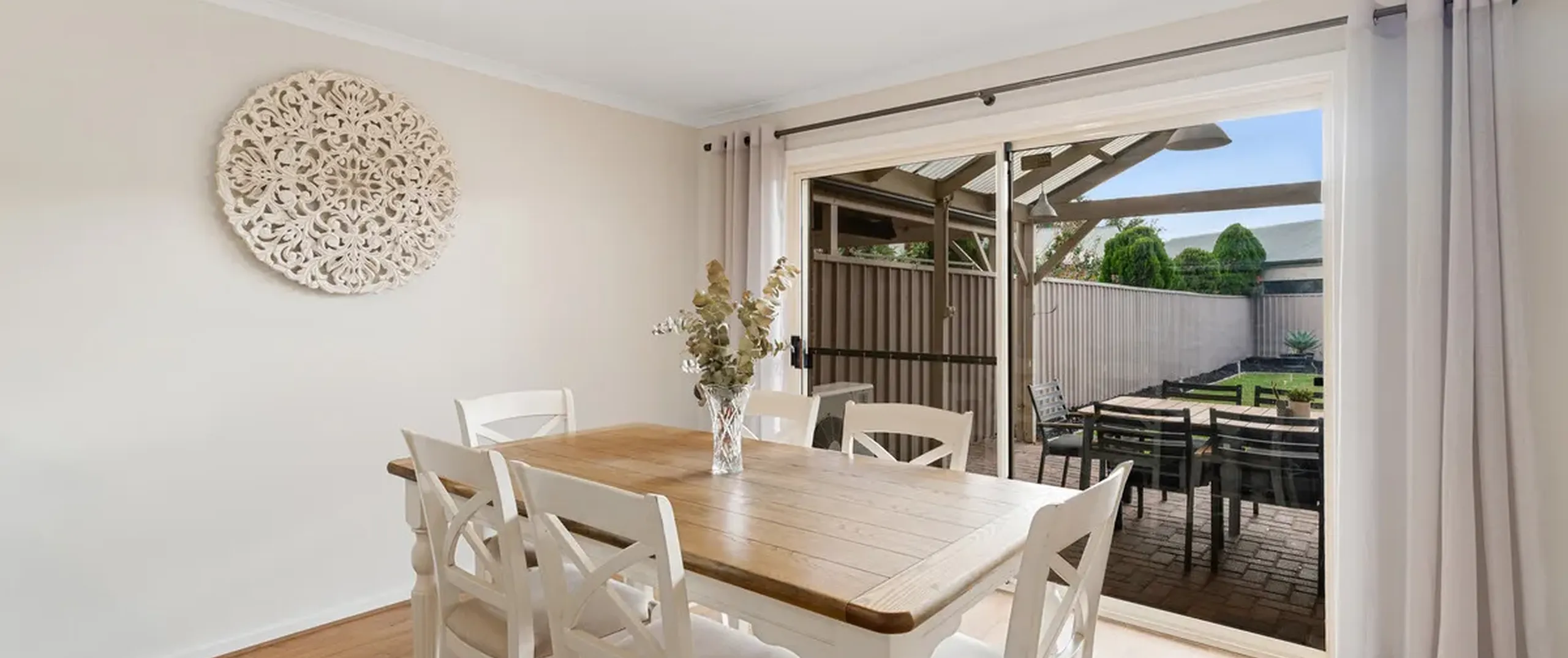 - Light-filled dining room opening seamlessly out to the pergola