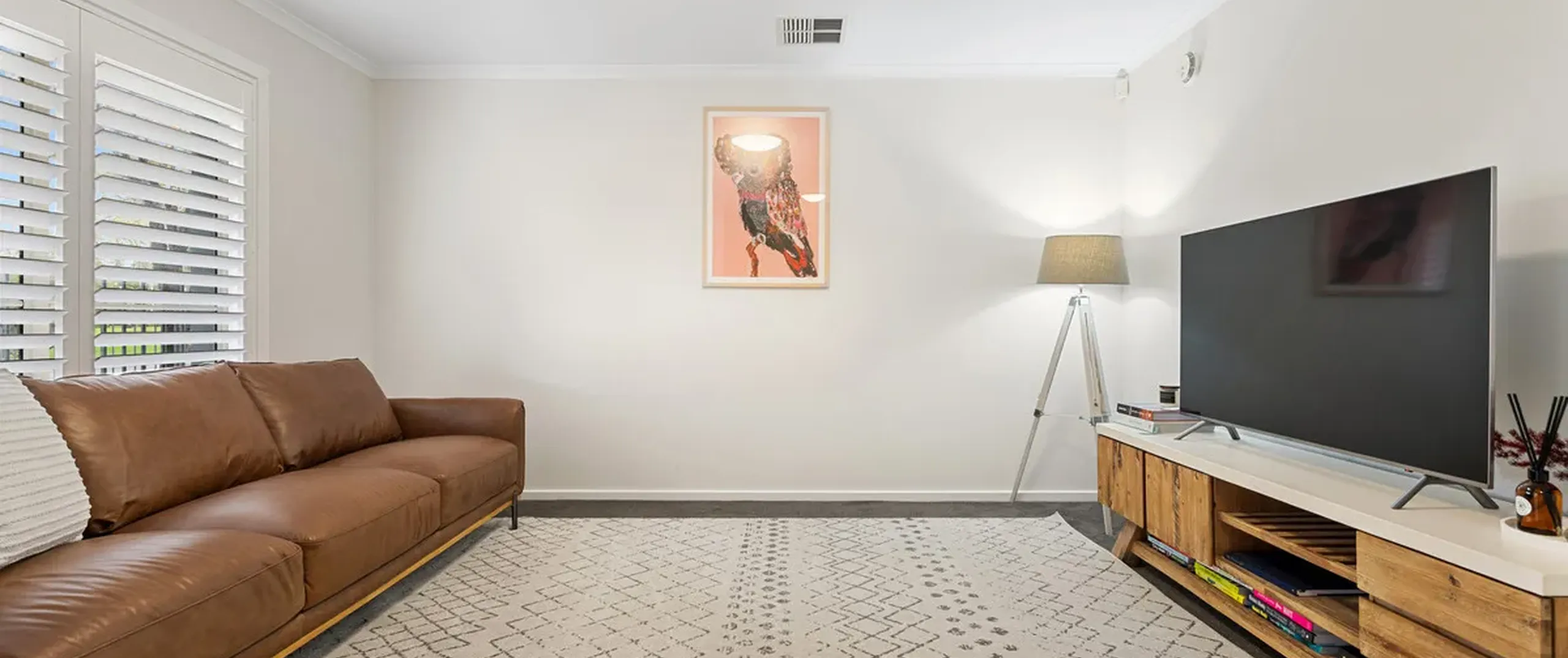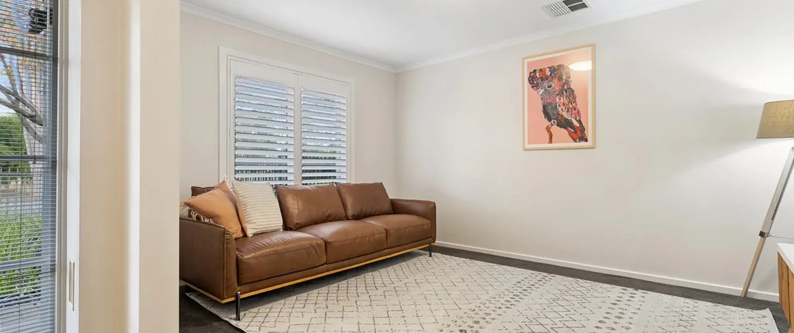 - Light-filled lounge room with plantation shutters