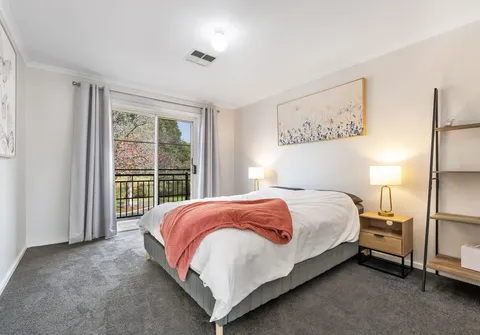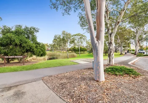 - Large master bedroom with walk-in robe, direct bathroom access and private balcony overlooking Roy Amer Reserve