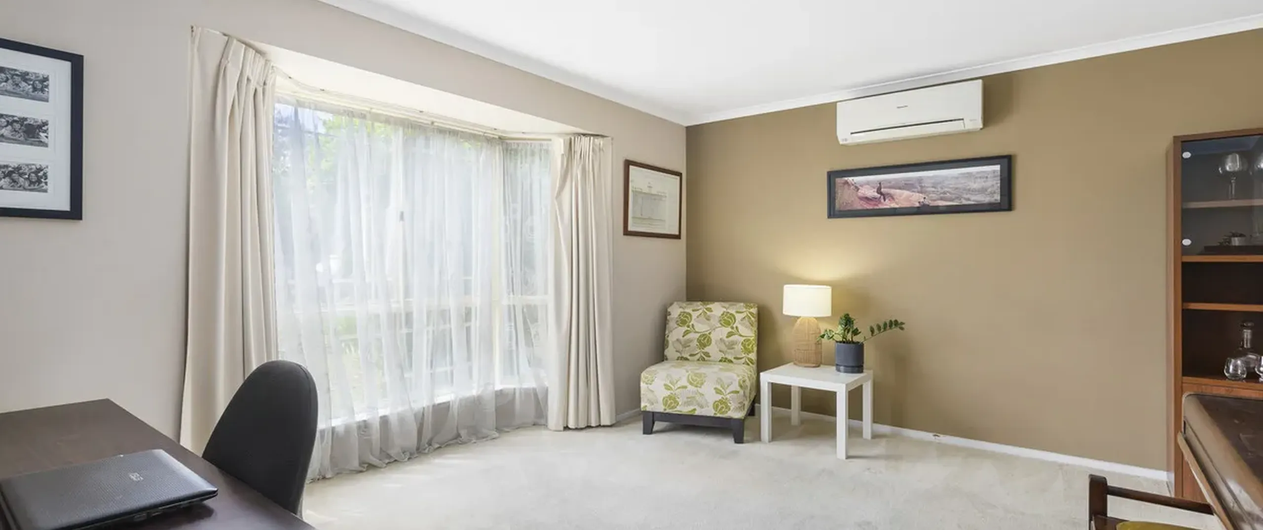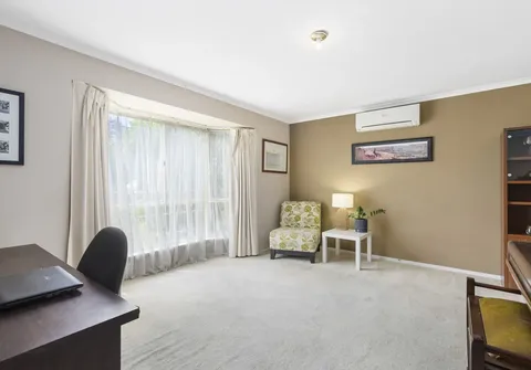 - Formal lounge flooded with natural light from the stunning bay window, featuring split system air conditioner