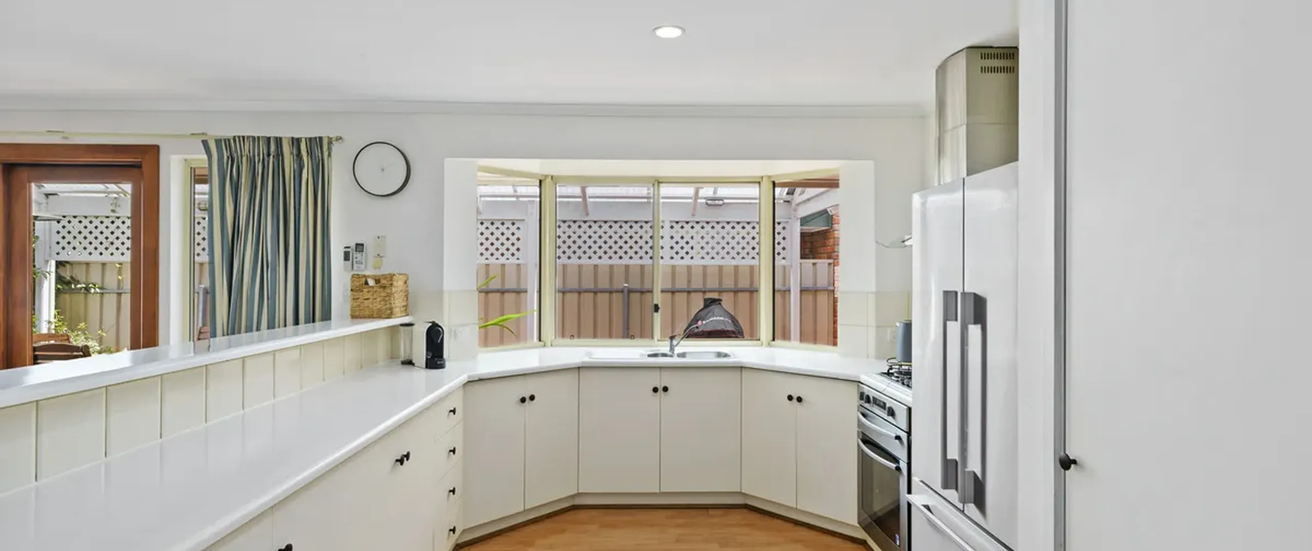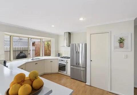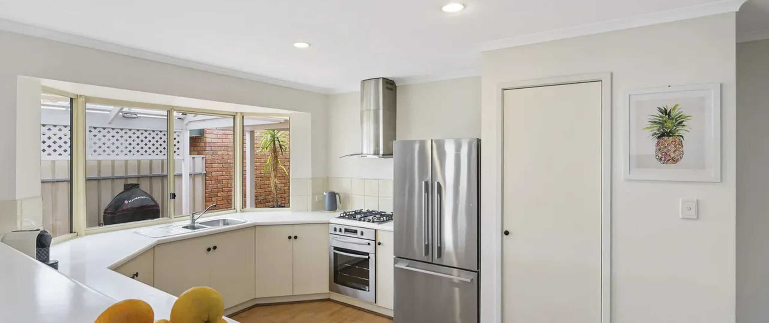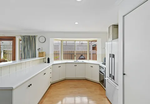 - Timeless kitchen with stainless steel appliances, gas cooktop, boasting ample cupboard and bench space
