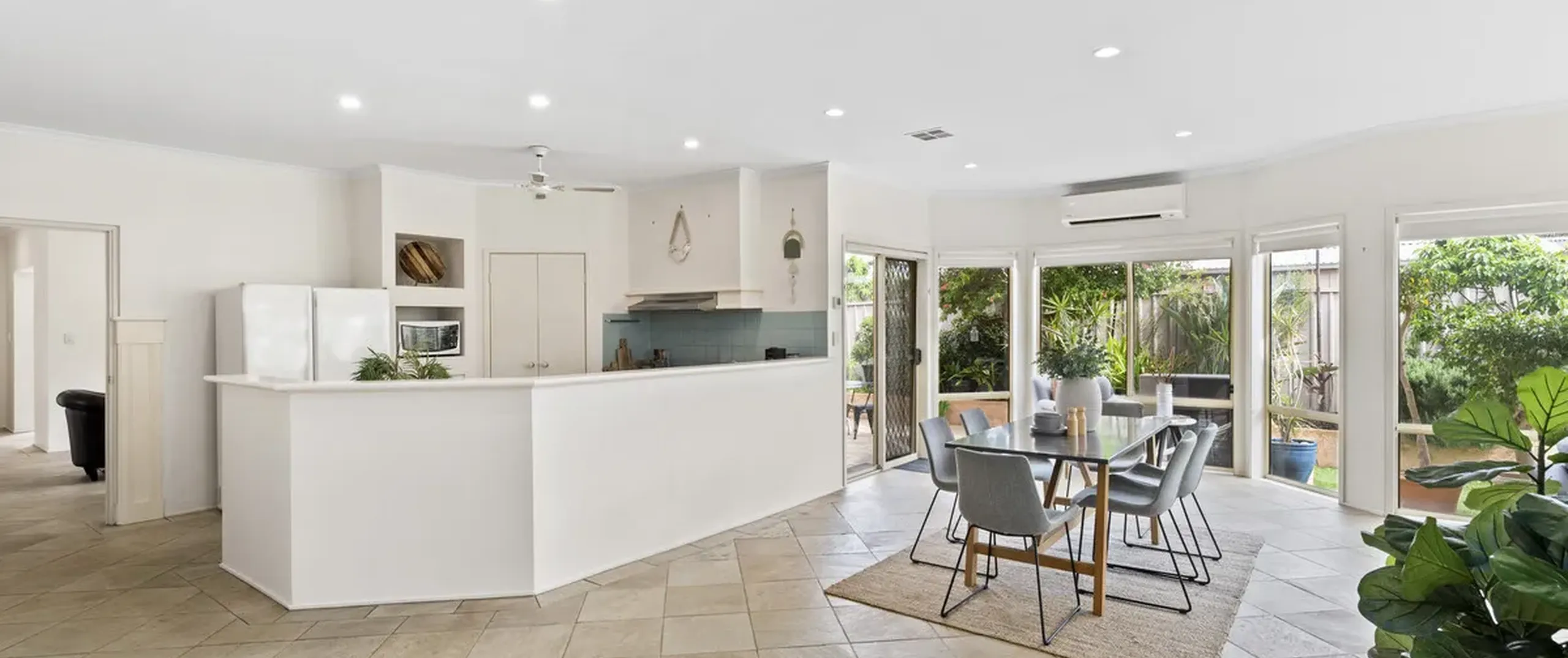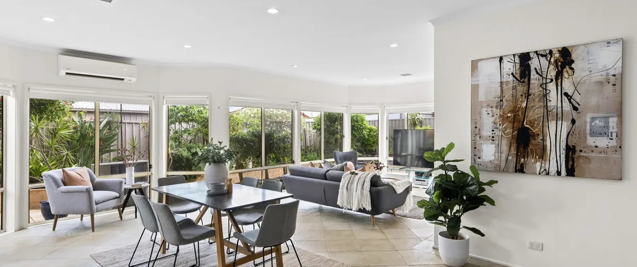 - Open plan living/meals, kitchen and lounge flooded with natural light from the abundance of windows and complete with a reverse cycle split system air conditioner and ducted gas heating