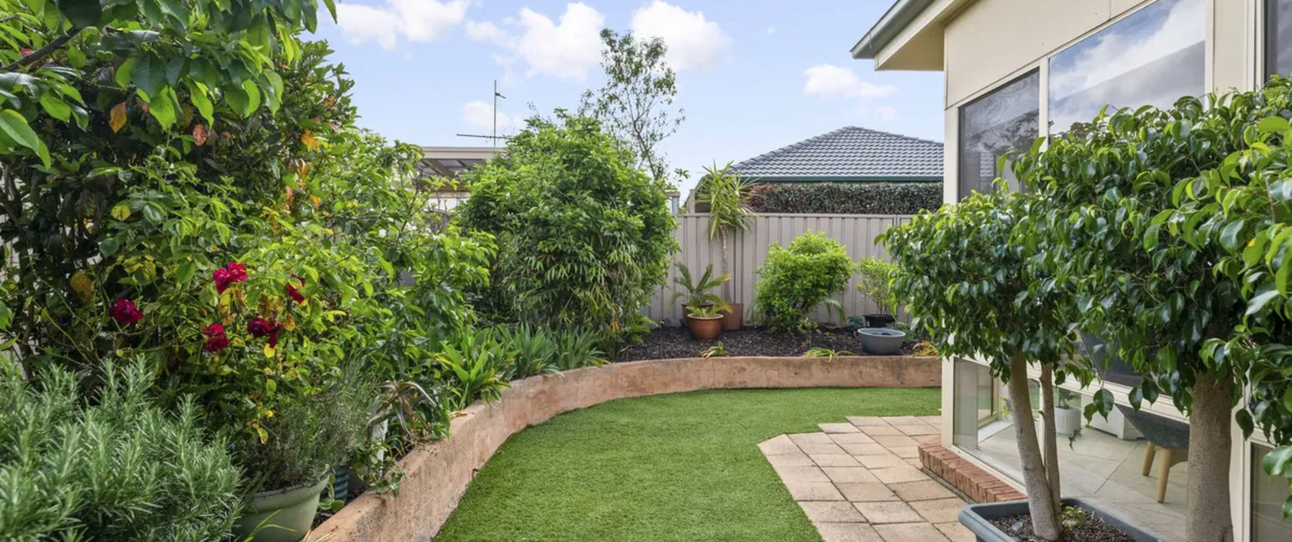 - Sizable low-maintenace artificial lawned backyard for kids and pets to play