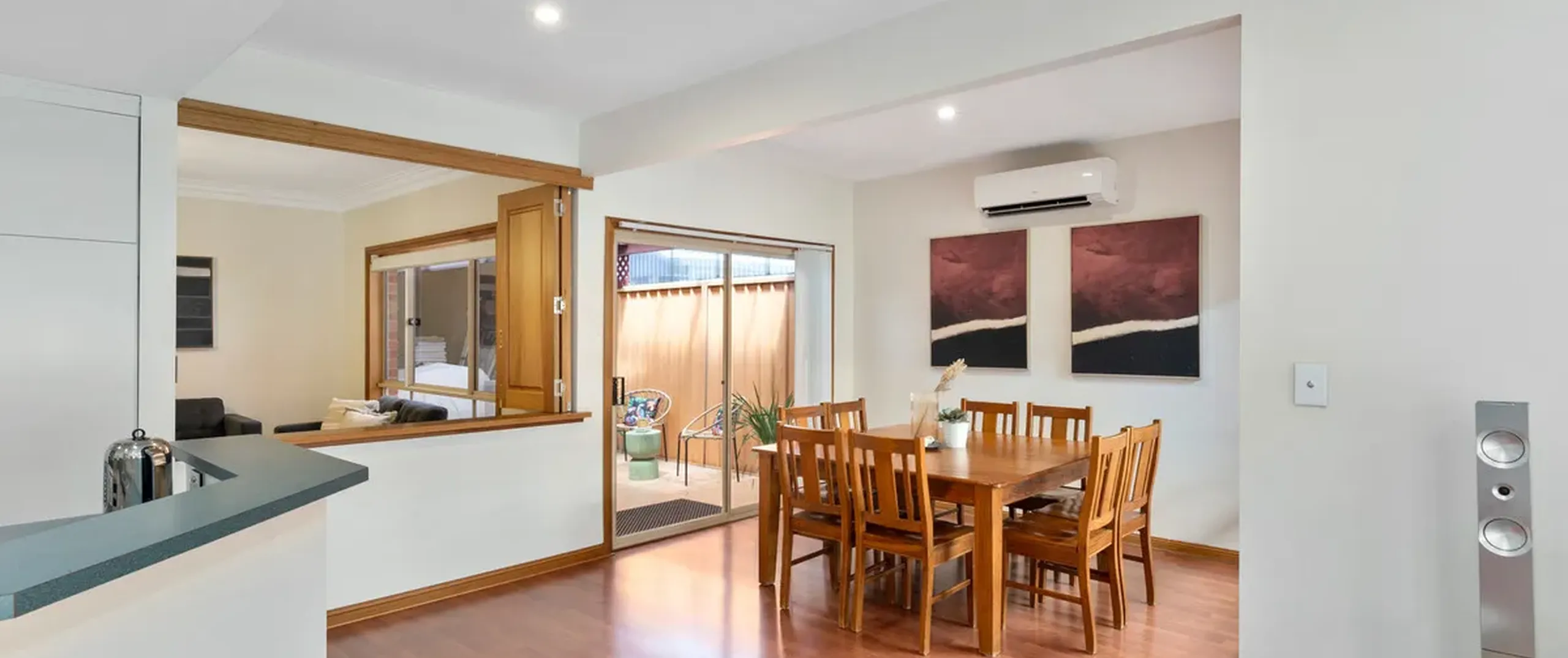 - Spacious open plan family and meals area with split system air conditioner and sliding doors to both verandah and courtyard