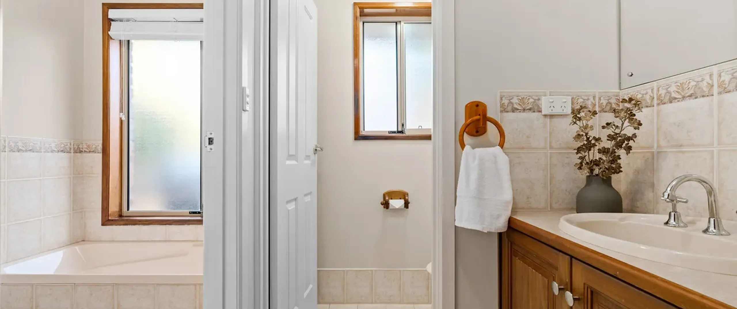 - Three-way main bathroom with separate bath and shower + separate toilet