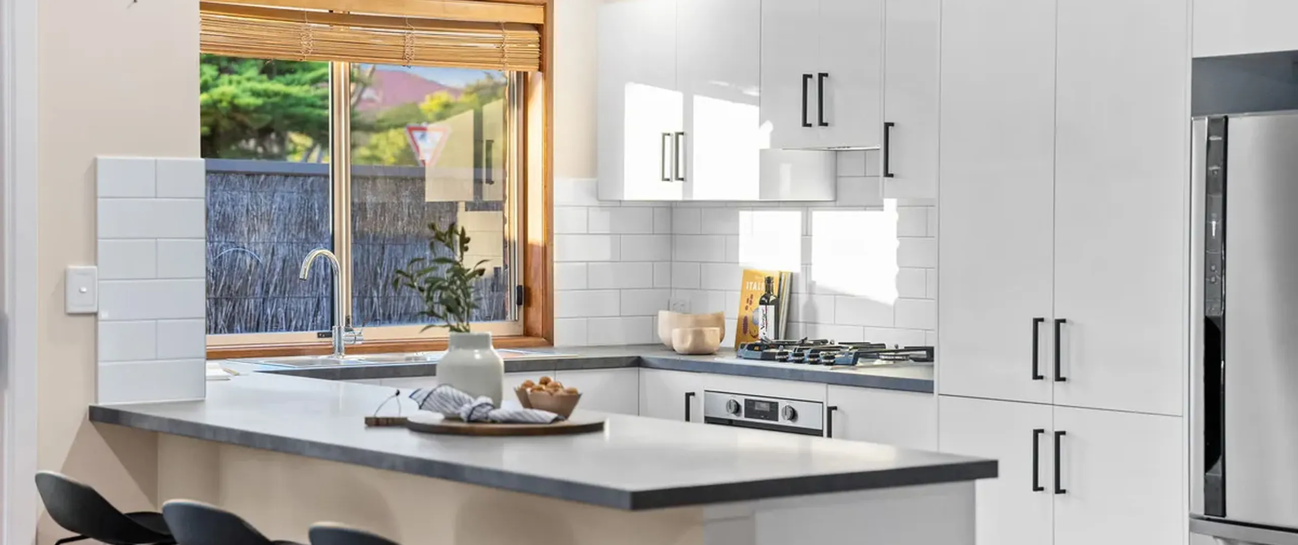 - Modern kitchen with gas cooktop and ample bench and cupboard space