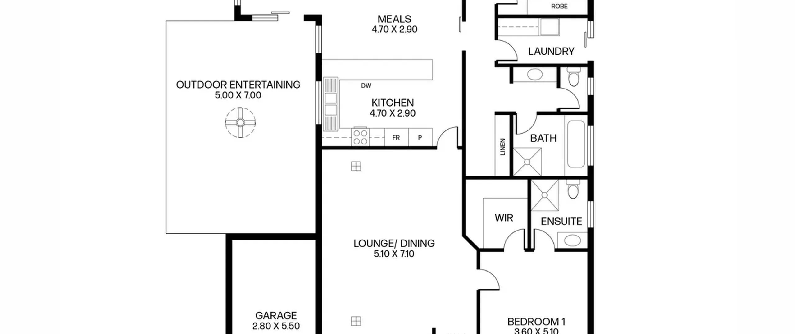 - Open plan living, meals and kitchen