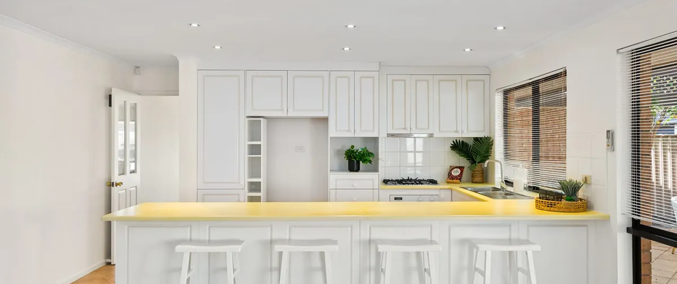 - Clean and sleek kitchen with ample cupboard and bench space, breakfast bar and gas stove top