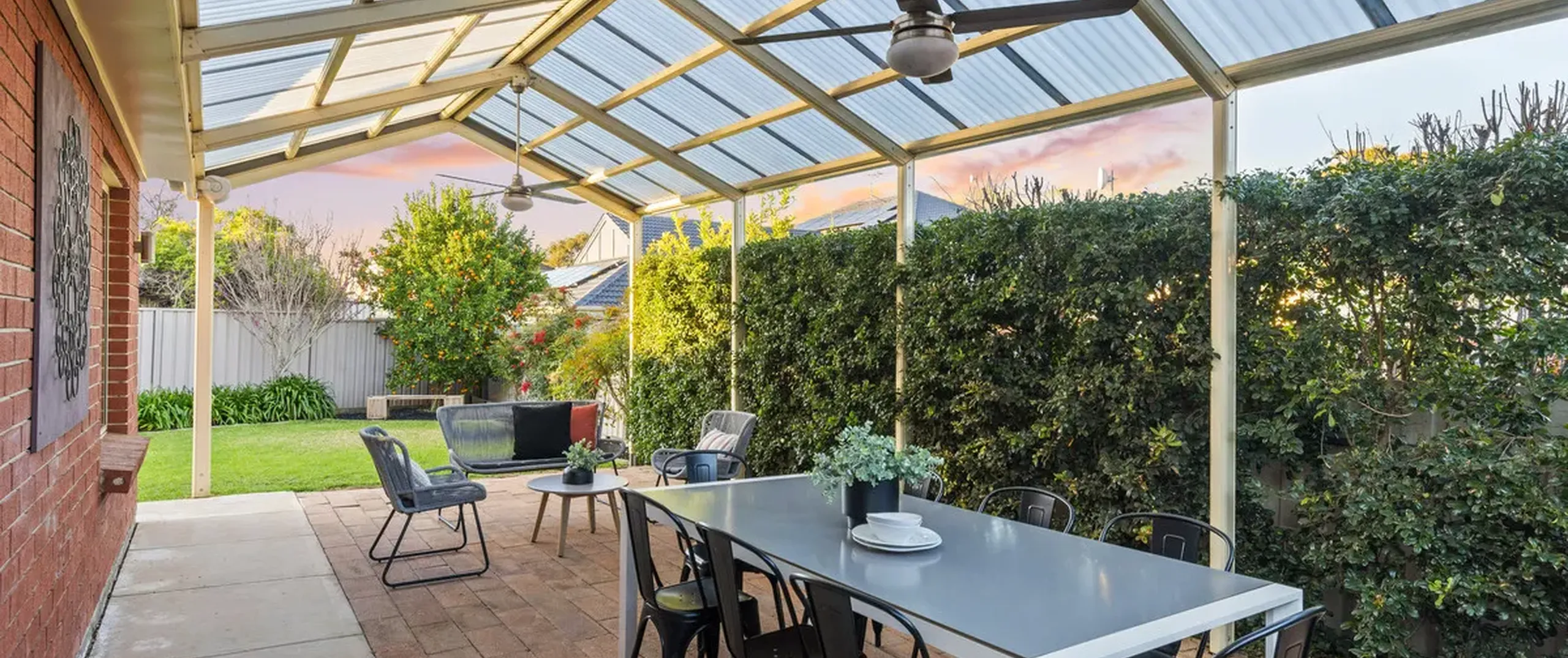 - Impressive outdoor entertaining area with pitched roof pergola and ceiling fans