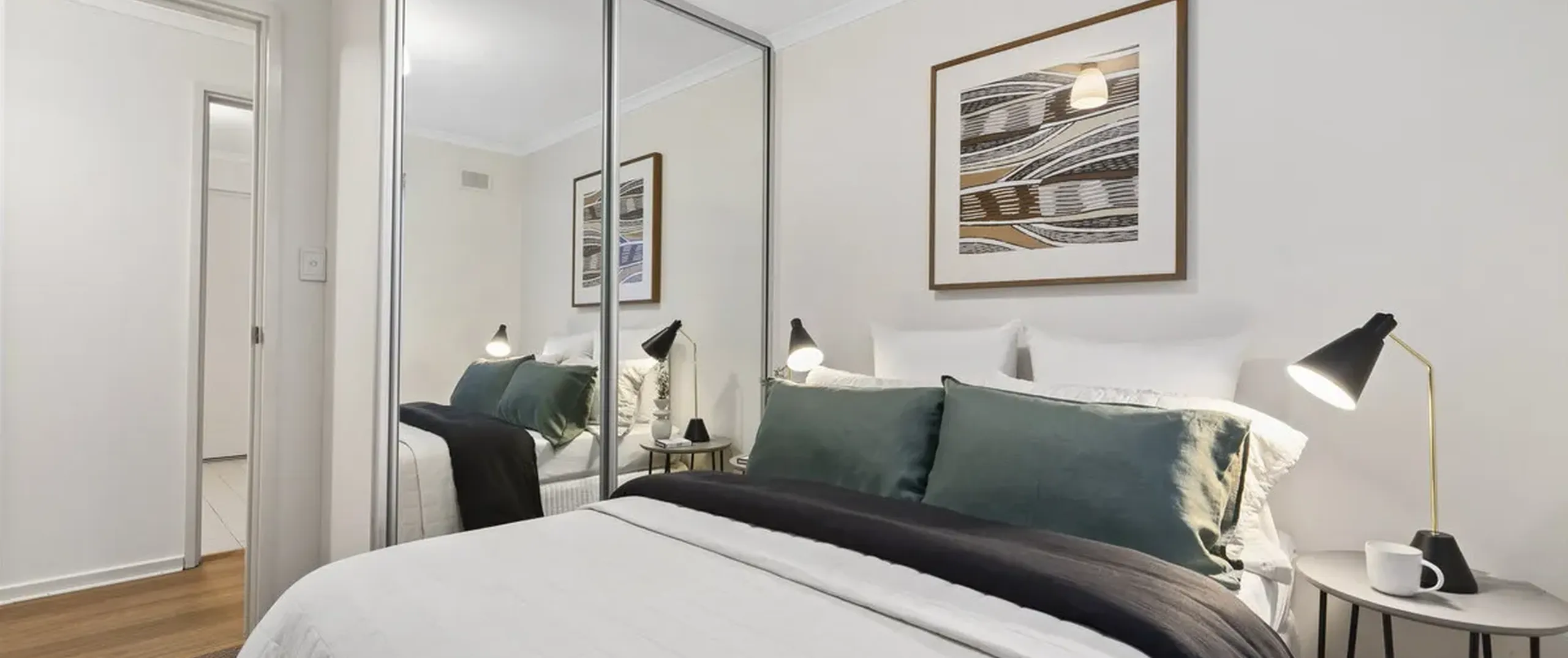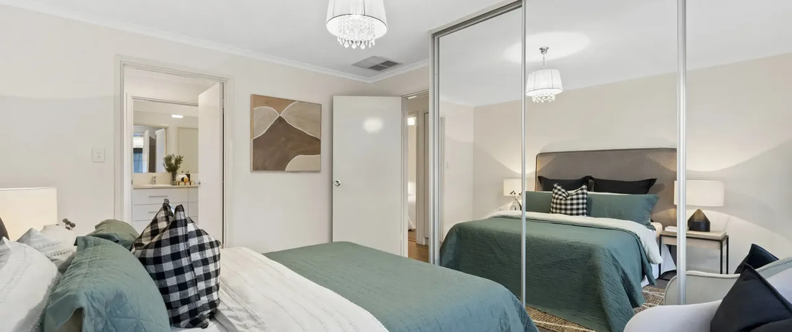- Master bedroom with mirrored built-in robe and direct access into bathroom