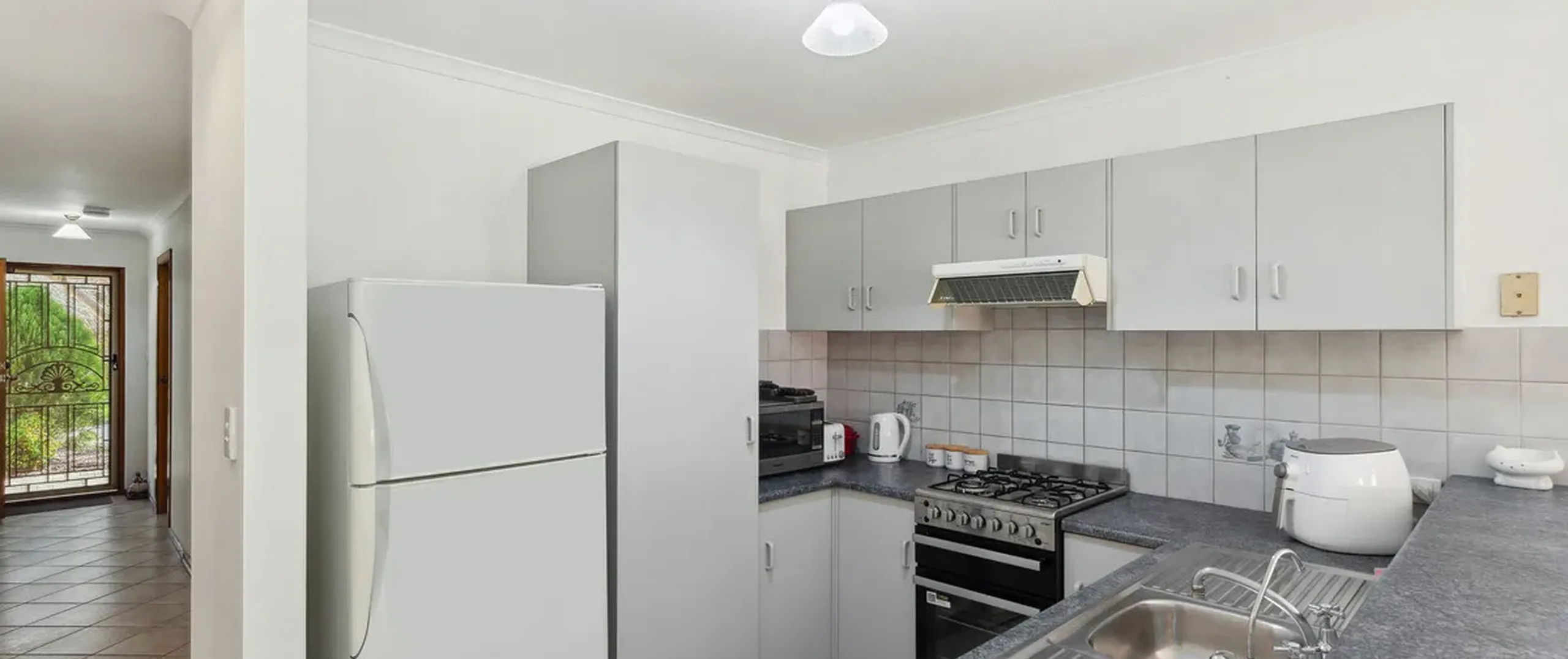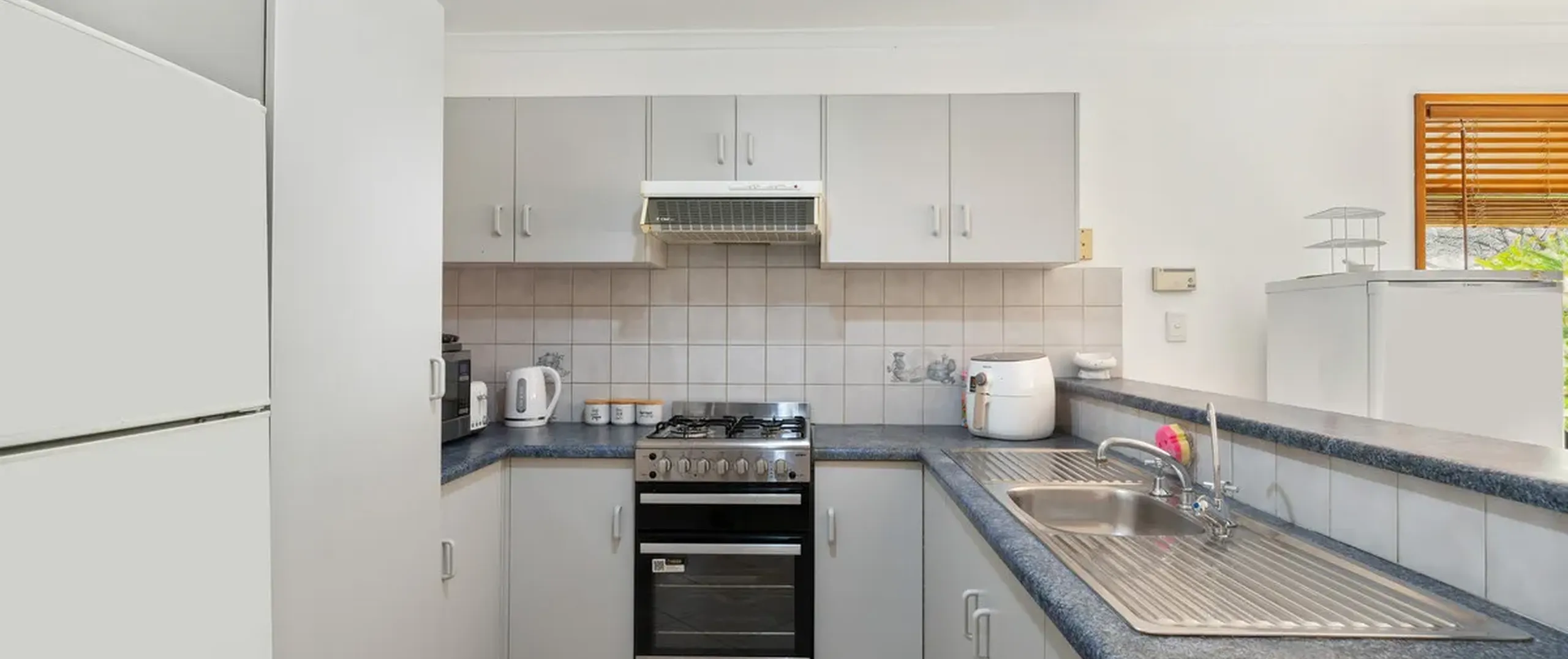 - Charming kitchen offering stainless steel gas cooktop and oven with ample cupboard and bench space