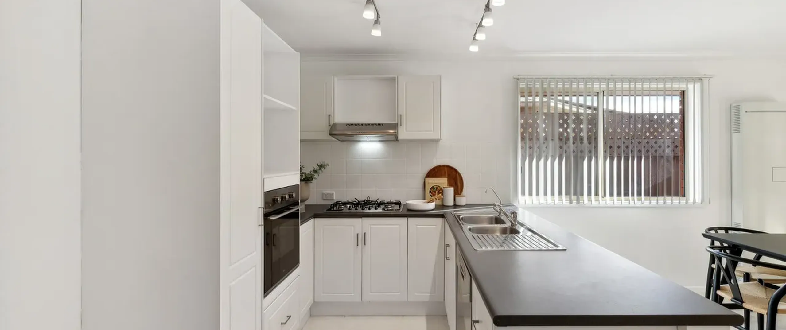 - Well-appointed kitchen complete with stainless steel gas cooktop, dishwasher, oven and ample cupboard and bench space
