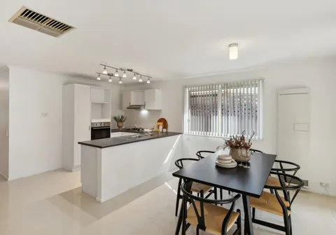 Be greeted by a welcoming facade that sets the tone as you enter, leading you directly into the rear of the home, offering a light filled open-plan family, kitchen and meals area. A neutral colour palette flows throughout this space and the home chef will adore the kitchen fully equipped with sweeping benchtops, ample of storages and stainless-steel appliances.