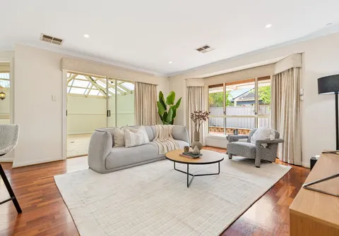 Two living rooms provide flexibility for both relaxation and entertaining, while ducted reverse cycle air conditioning ensures year-round comfort. Electric roller shutters to the master bedroom, family and rear living areas add peace of mind and privacy.