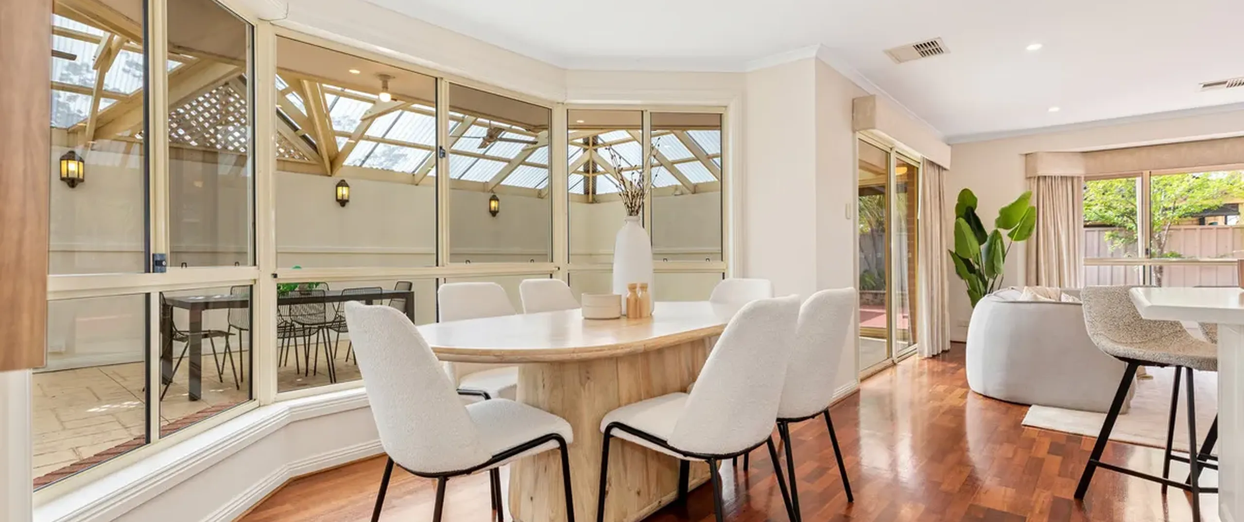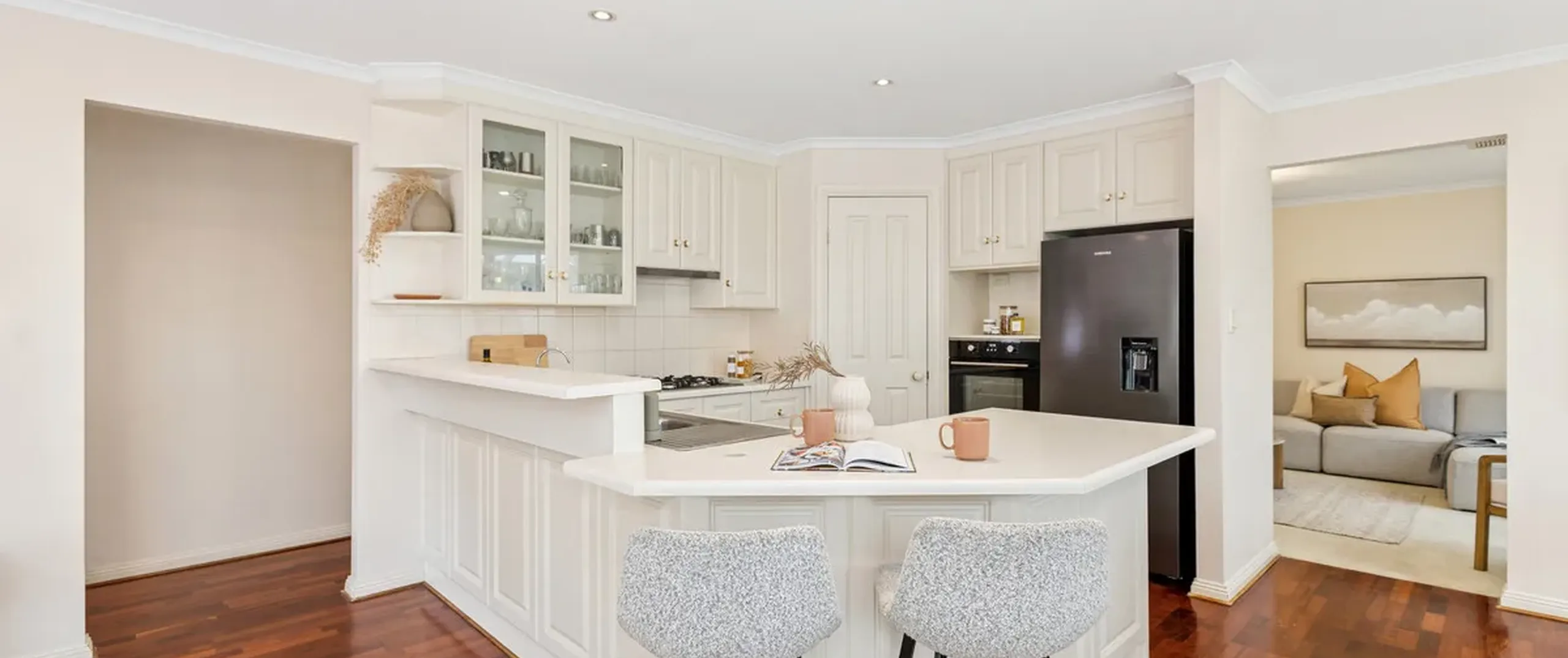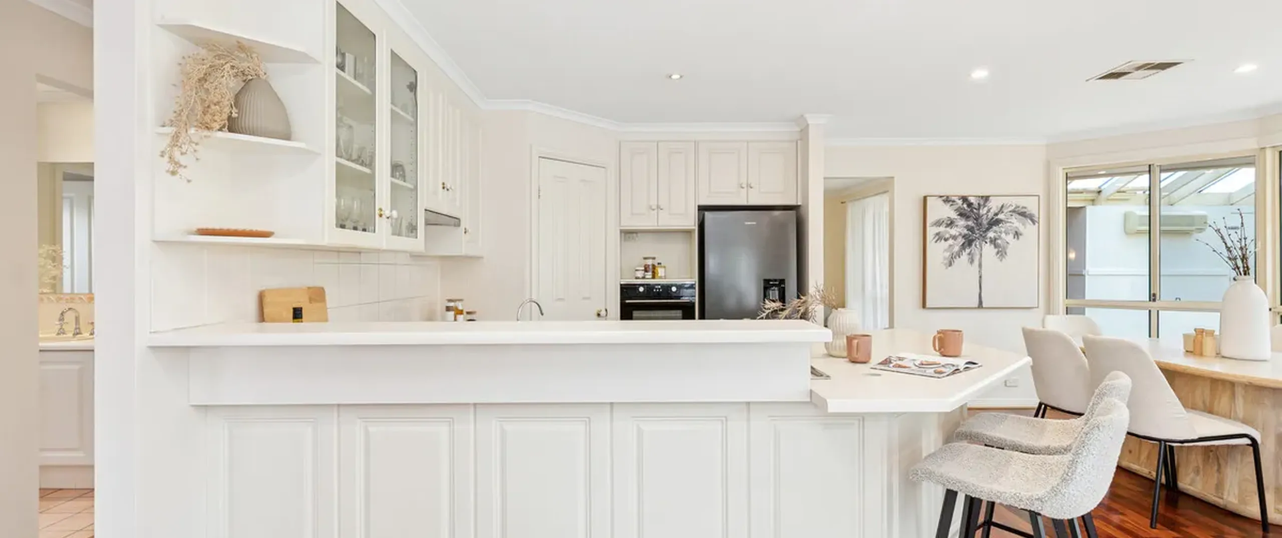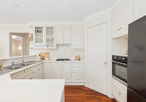 The well-appointed kitchen features stainless steel appliances, a dishwasher and abundant storage, catering perfectly for family meals and gatherings. A seamless flow connects to the outdoor spaces, encouraging both everyday living and entertaining.
