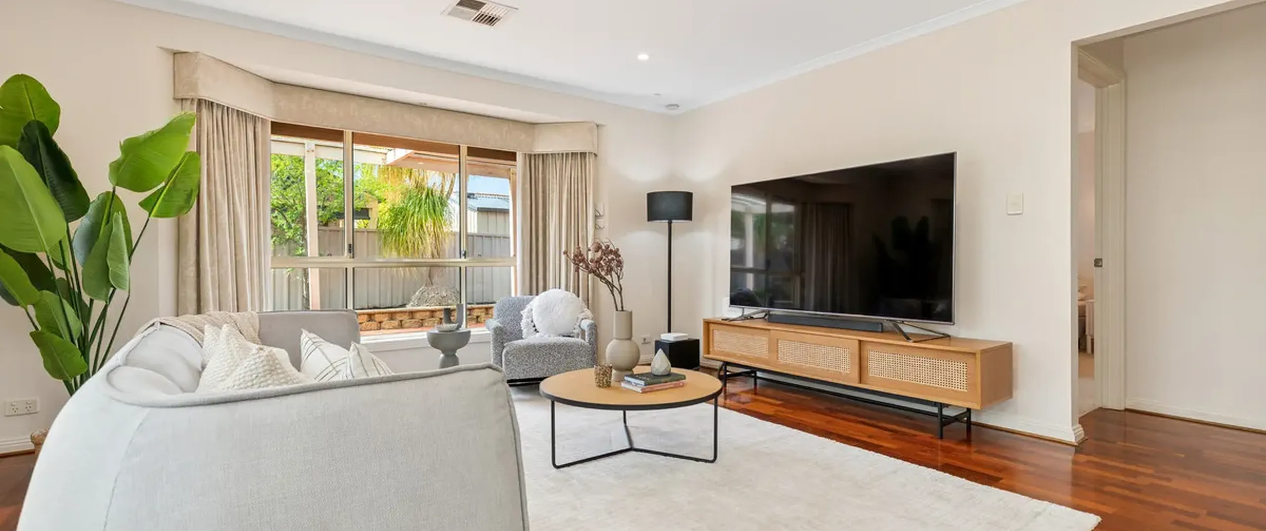 Positioned just footsteps from the lake, this home enjoys a desirable Oakden setting on a large corner block. With an attractive facade featuring rendered coinwork, it offers charming street appeal that sets the tone for what lies within.
