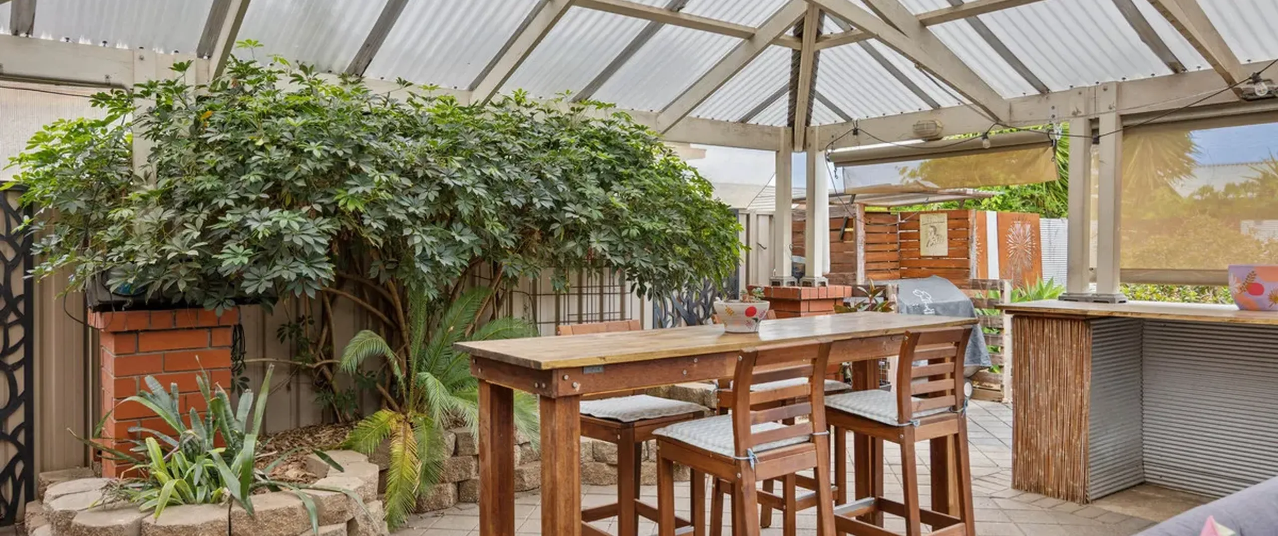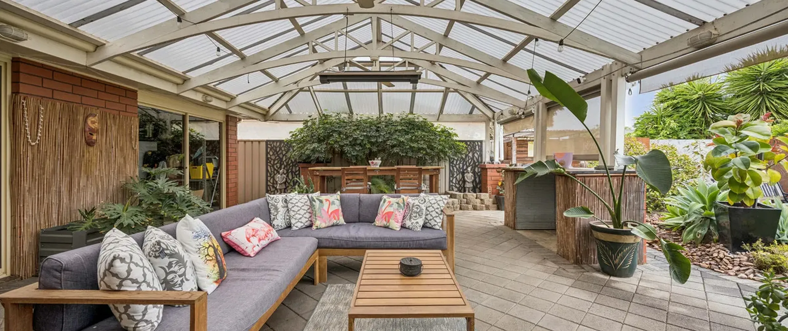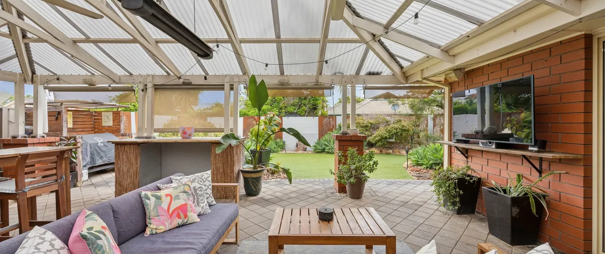 - Pitched roof outdoor entertaining with fans and heater