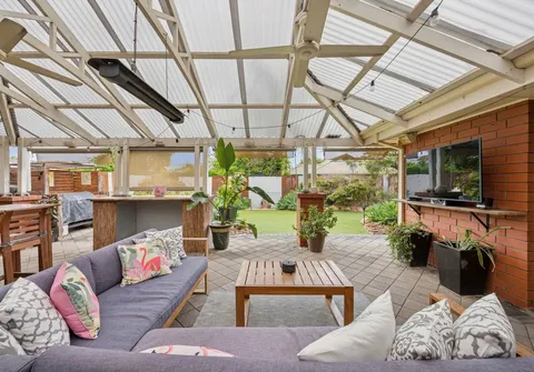 The outdoor entertaining space impresses with a high pitched roof, ceiling fans and a heater, allowing year round enjoyment. A valuable shed, double garage and sliding door access to the rear yard further enhance convenience while thoughtful updates elevate comfort throughout.