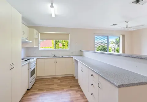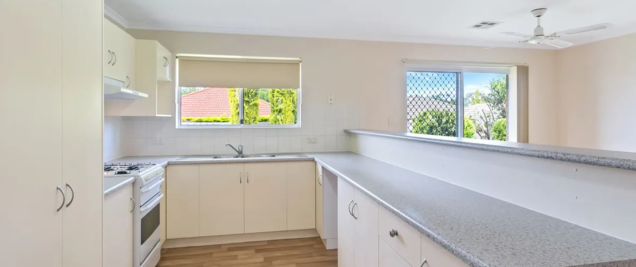 - Stylish kitchen with gas cooktop and ample bench and storage space