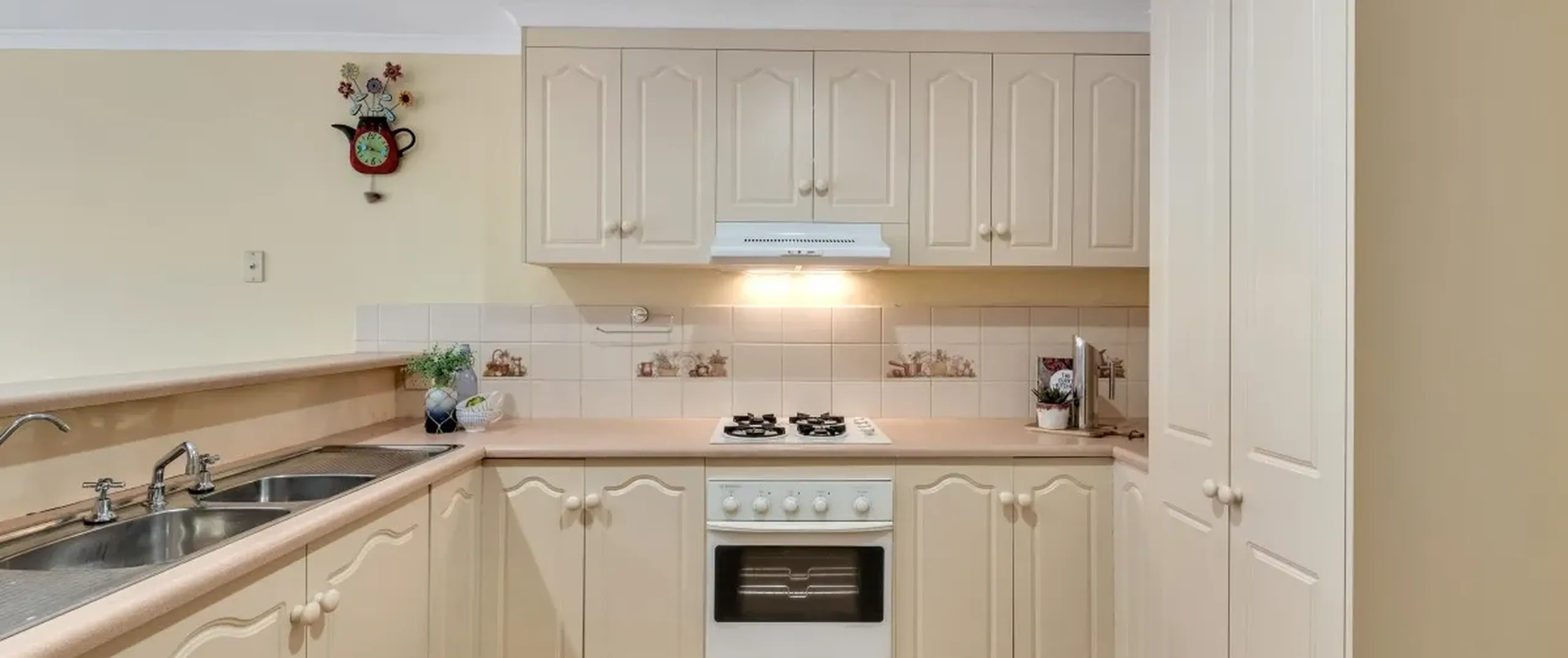 - Modern kitchen with gas cooktop, ample cupboard space and breakfast bar