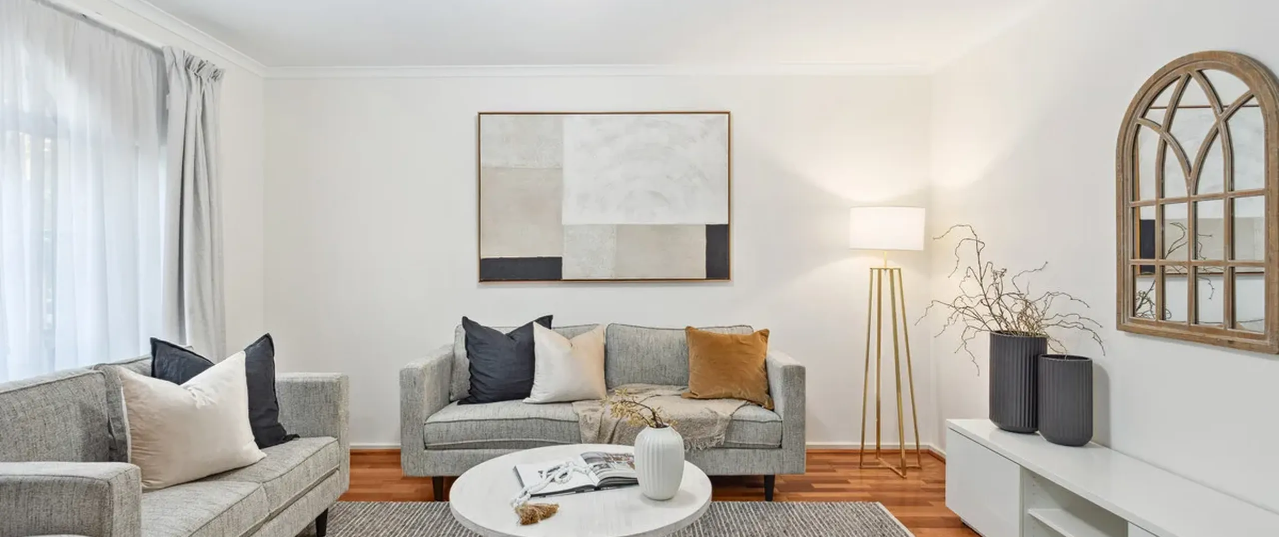 - Bright lounge room with large windows inviting plenty of natural light