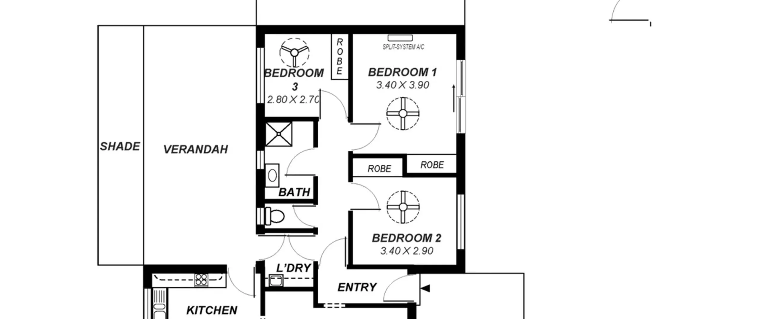 - Good sized bedrooms 2 and 3, both with built in robes and ceiling fans