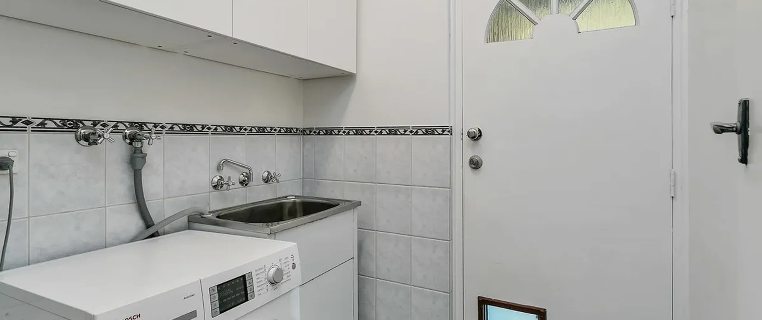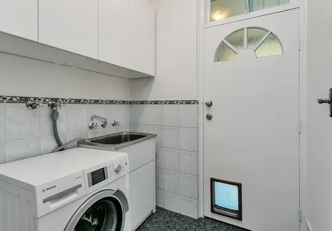 - Separate laundry with overhead cupboards and external access