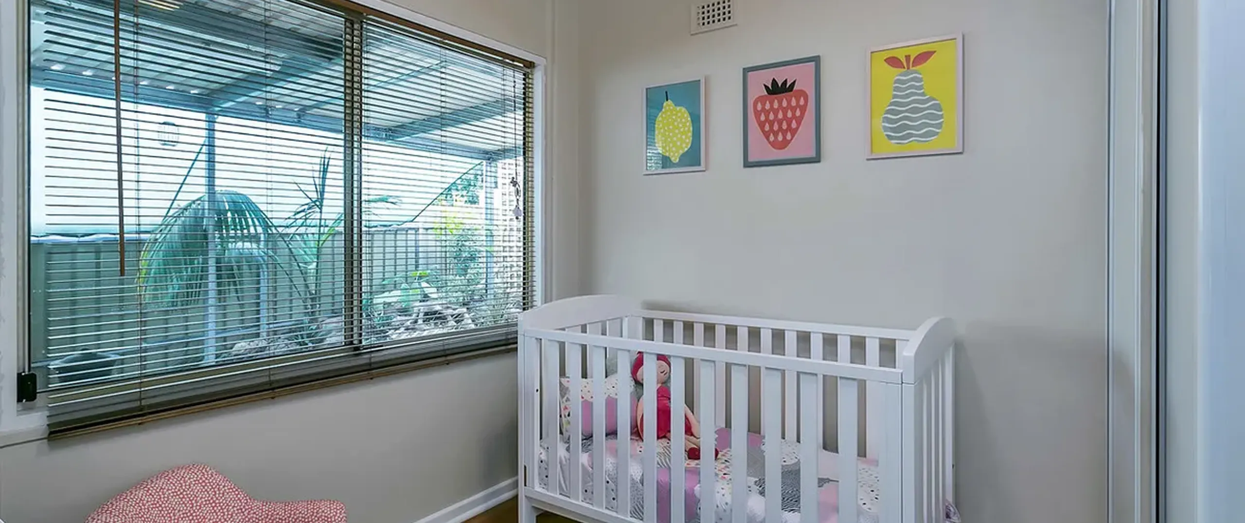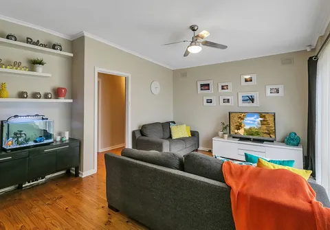 - Light filled lounge area with ceiling fan and split system air conditioner